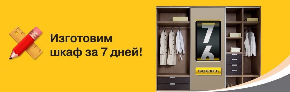 Теперь всего за 7 дней мы изготовим шкаф-купе по вашим индивидуальным размерам. Быстро и качественно!