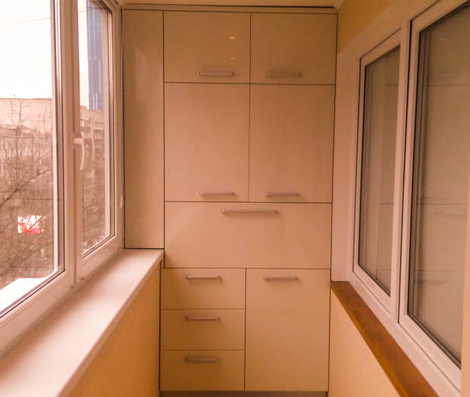 Балконная зона небольшая. По ее размерам часто не найти корпусную мебель. В этом случае ее придется заказать. Делая макет, прибегните к помощи профессионалов. Они предложат несколько возможных вариантов распределения пространства и внешнего оформления.