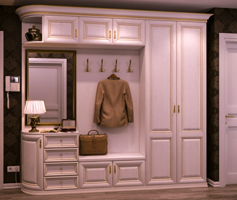Использование этого цвета в прихожей является спорным решением, однако оно будет выглядеть достаточно оригинально. Его любой оттенок является воплощением света, потока солнечных лучей и это свойство помогает визуально расширять пространство внутри любого помещения. Белые тона вселяют невероятное ощущение чистоты и гармонии, одновременно создавая ощущение уюта и комфорта.