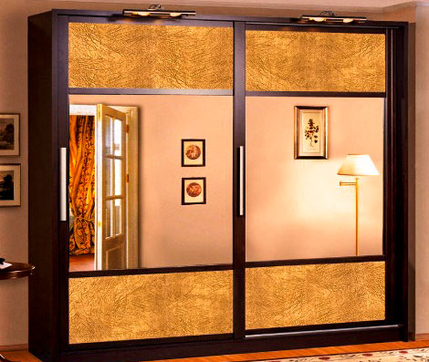 Следующий вариант используемого материала- МДФ. Этот материал легко поддается фрезеровке, с помощью которой можно наносить различные узоры. Для увеличения срока службы данного вида фасада, всю его поверхность часто покрывают пленкой ПВХ. В этом случае фасад станет износостойким, в том числе к негативному воздействию бытовой химией. Пленка ПВХ может придавать эффект глянца или матовости, иметь любой оттенок, имитировать различные текстуры, например, дерево или кожу. Как вариант, фасады из МДФ можно окрасить. При покраске могут быть использованы различные цвета или эффекты (матирование, глянец, патина,). При отсутствии нужного цвета в заводской палитре, можно, например, заказать гардеробную со стандартной текстурой и окрасить самостоятельно.
