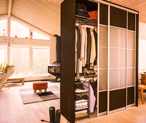 Если в комнате много разнообразной мебели, то от какой-то придётся отказаться. Лишние предметы гарнитура с успехом заменит шкаф купе, который и разделит вашу площадь на две половины. Осталось лишь правильно рассчитать линию разграничения и подобрать конструкцию. Если шкаф будет объёмным и высоким, то многие предметы, которые размещались в шифоньерах, комодах, трельяжах обретут своё место в недрах купе. Этот вместительный гардероб заменит большую часть мебели. Когда не все вещи и предметы умещаются в купе, то можно купить прихожую в коридор и там разместить остаток. Если же в квартире нет пока мебели, то разумно предусмотреть многофункциональную конструкцию. Внутри шкафа можно разместить: