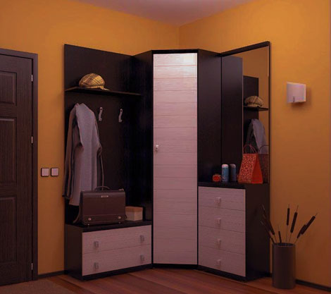 Основная особенность угловой прихожей заключается в её компоновке. Даже если мебель будет расставлена по неровной линии, то это должен быть единый комплекс. Если подобрать грамотное сочетание этих элементов, то она будет очень вместительной и занимать минимальное количество квадратных метров. Если посмотреть на фото маленькой угловой прихожей, то в глаза сразу же бросаются следующие преимущества: