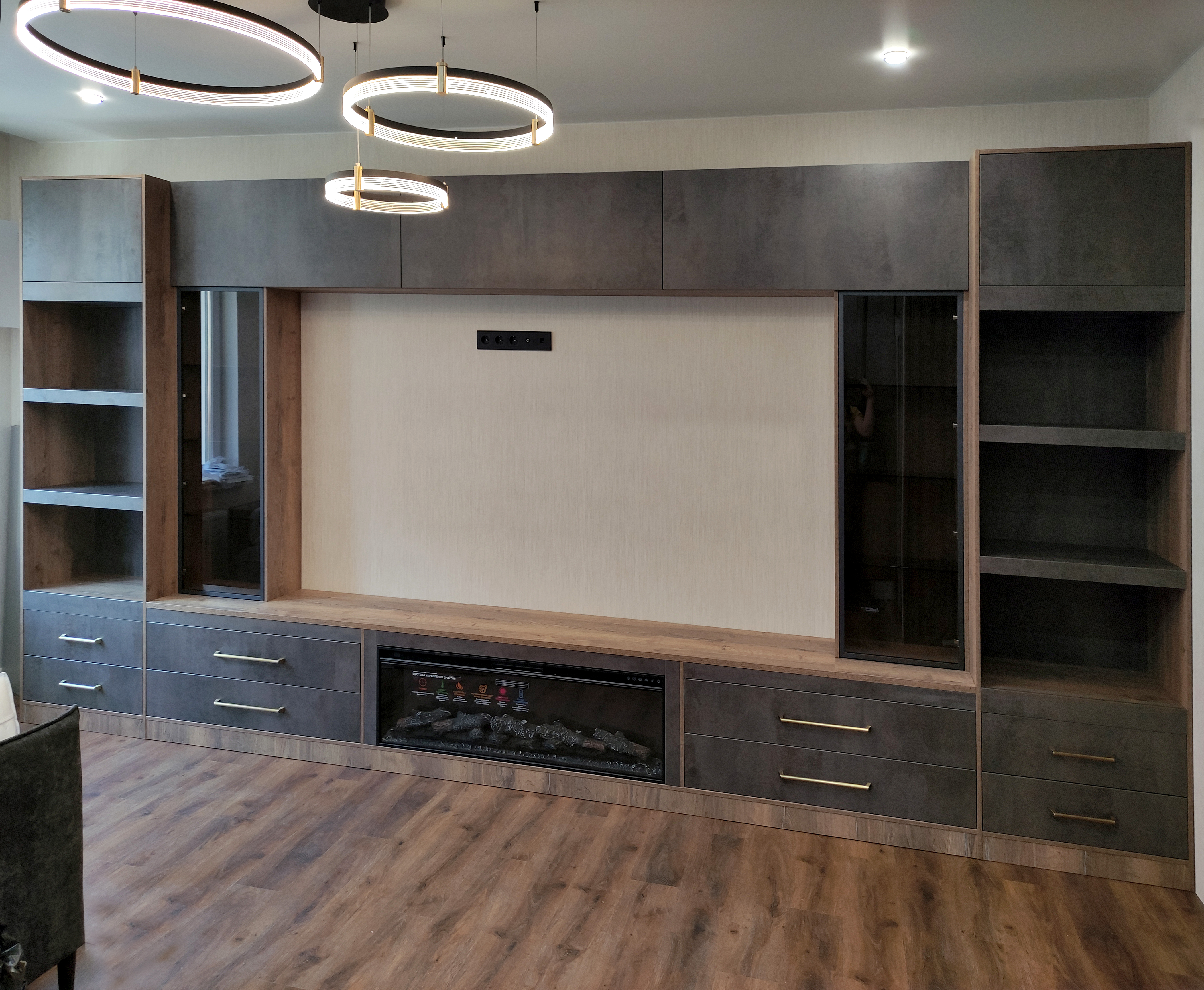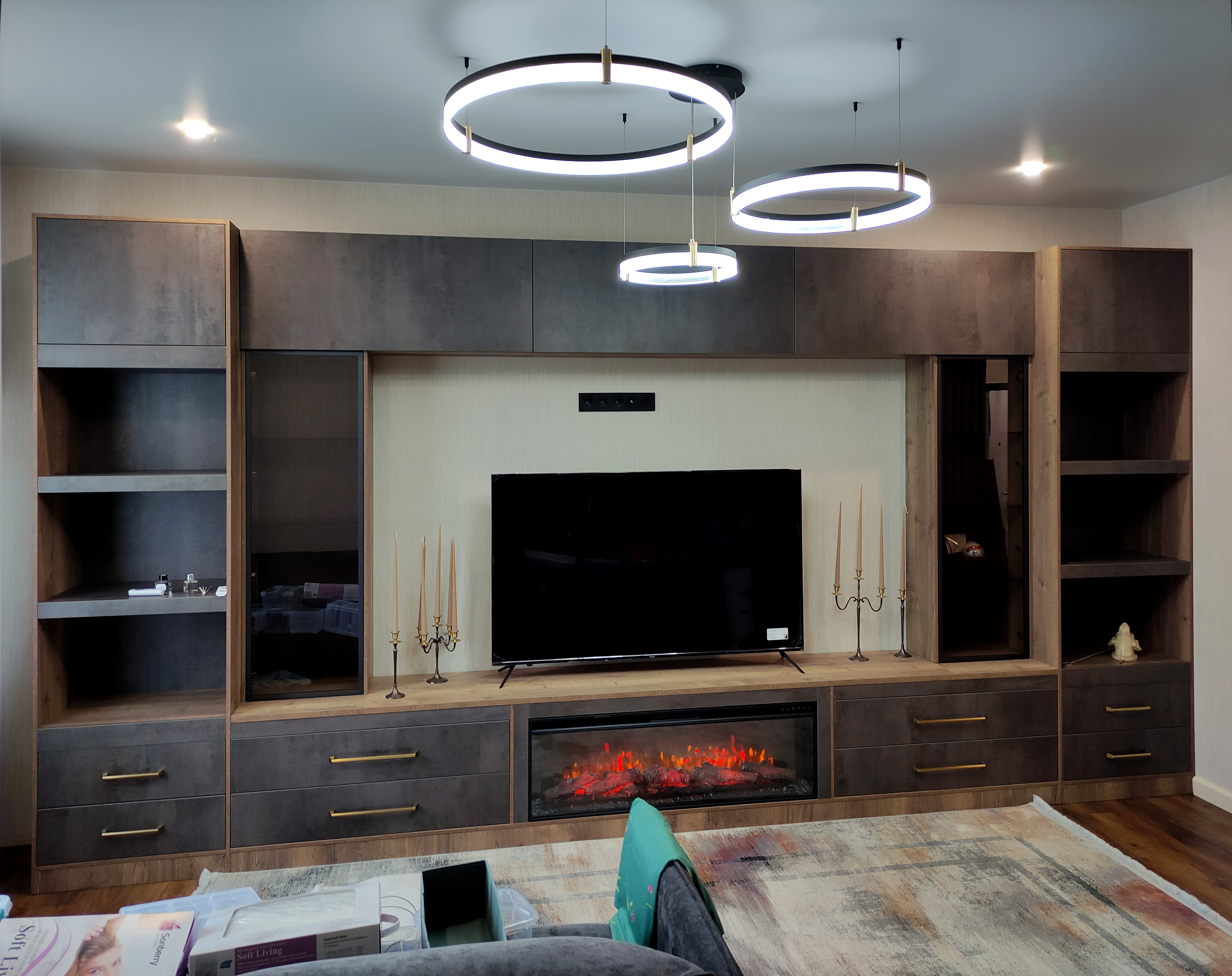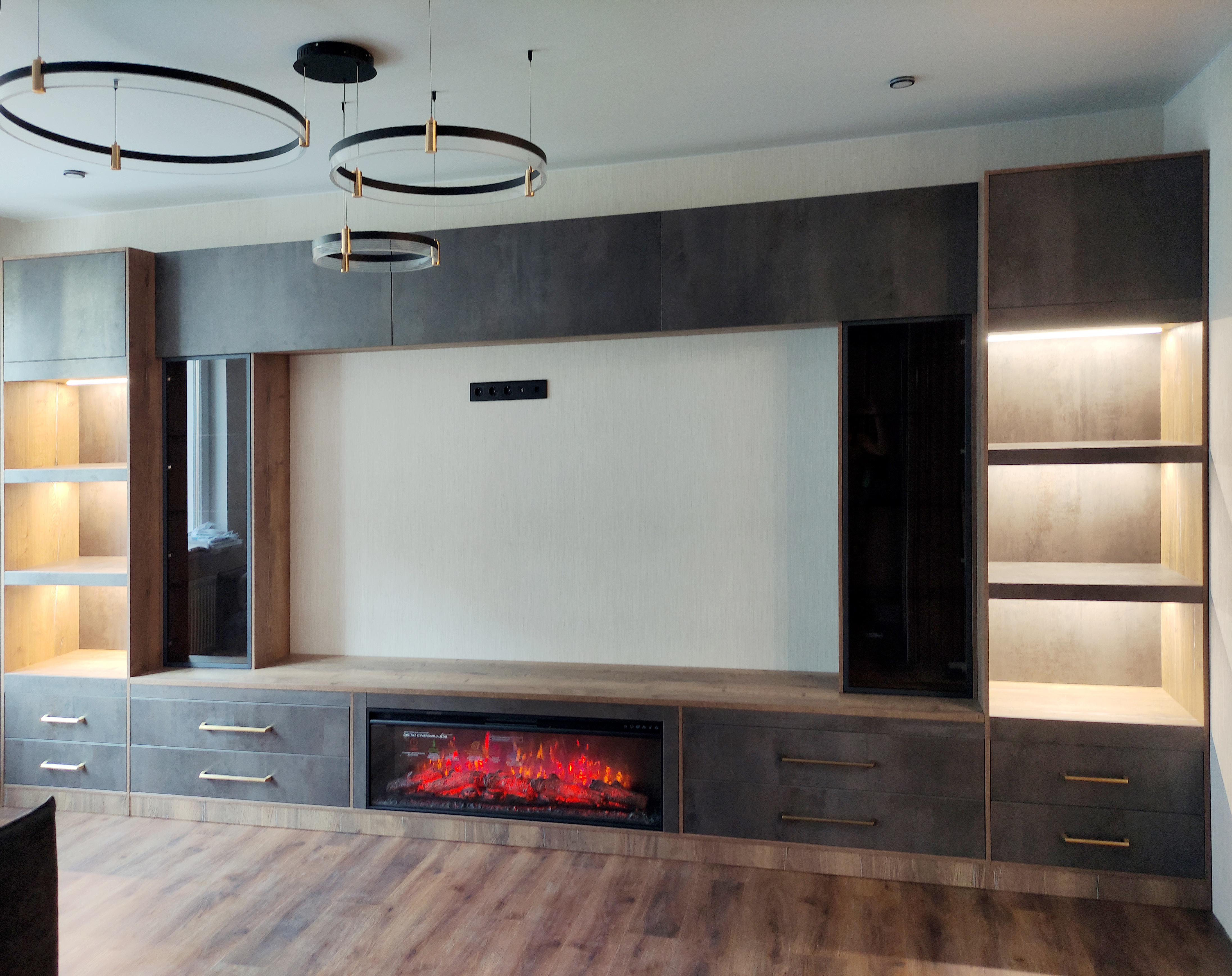Для гостиной с электрическим камином можно выбрать мебель из натурального дерева или МДФ, которая будет сочетаться с камином и создавать уютную атмосферу. Также можно добавить подсветку для создания дополнительного эффекта.