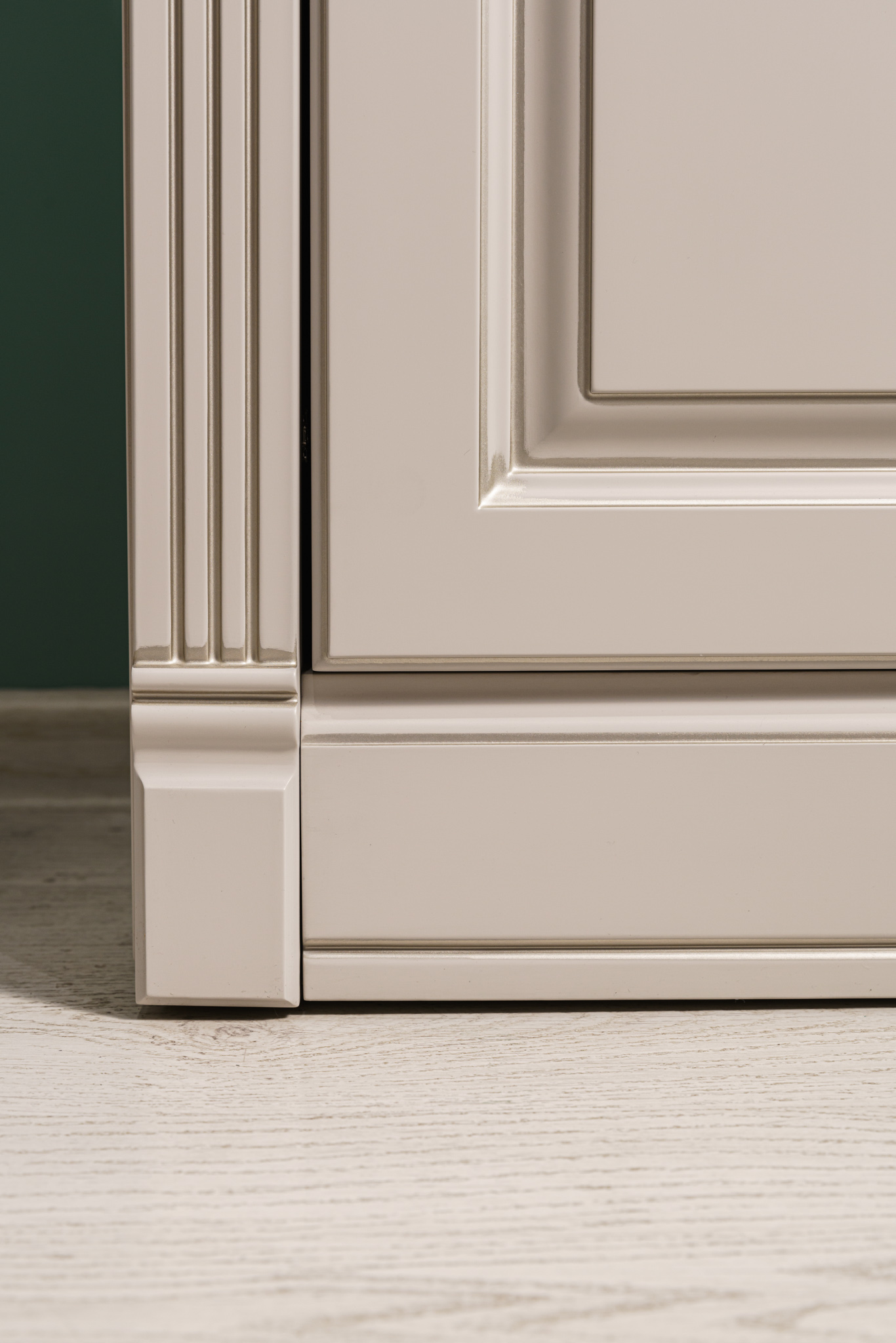 Фасад изделия - МДФ окрашенный эмалью, цвет CS010 Grigio Cemento (Color SYSTEM), патина цвет "шампань".