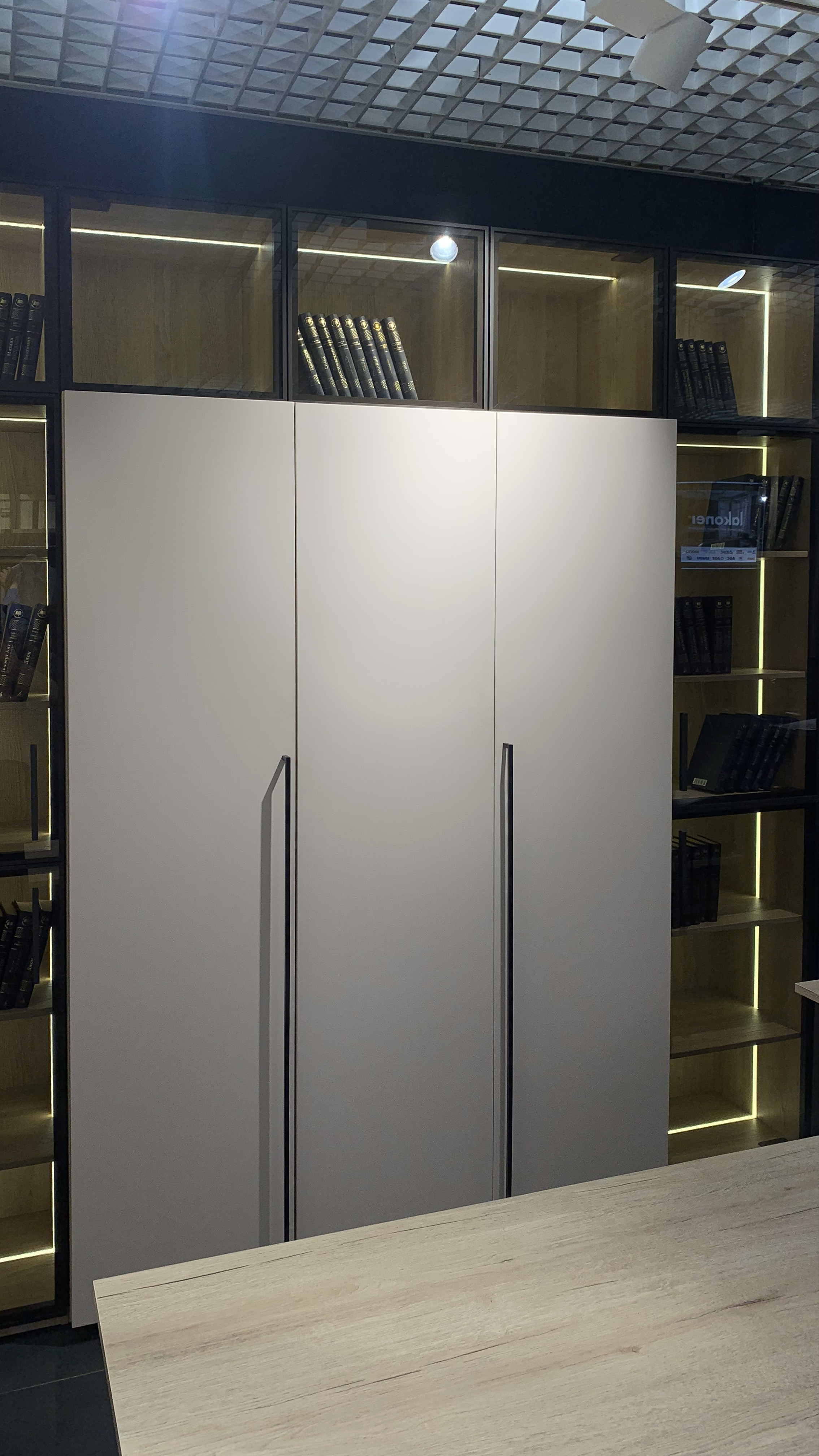 Фасад — МДФ Софт латте, Браво с пазом, рейки со сквозными пазами