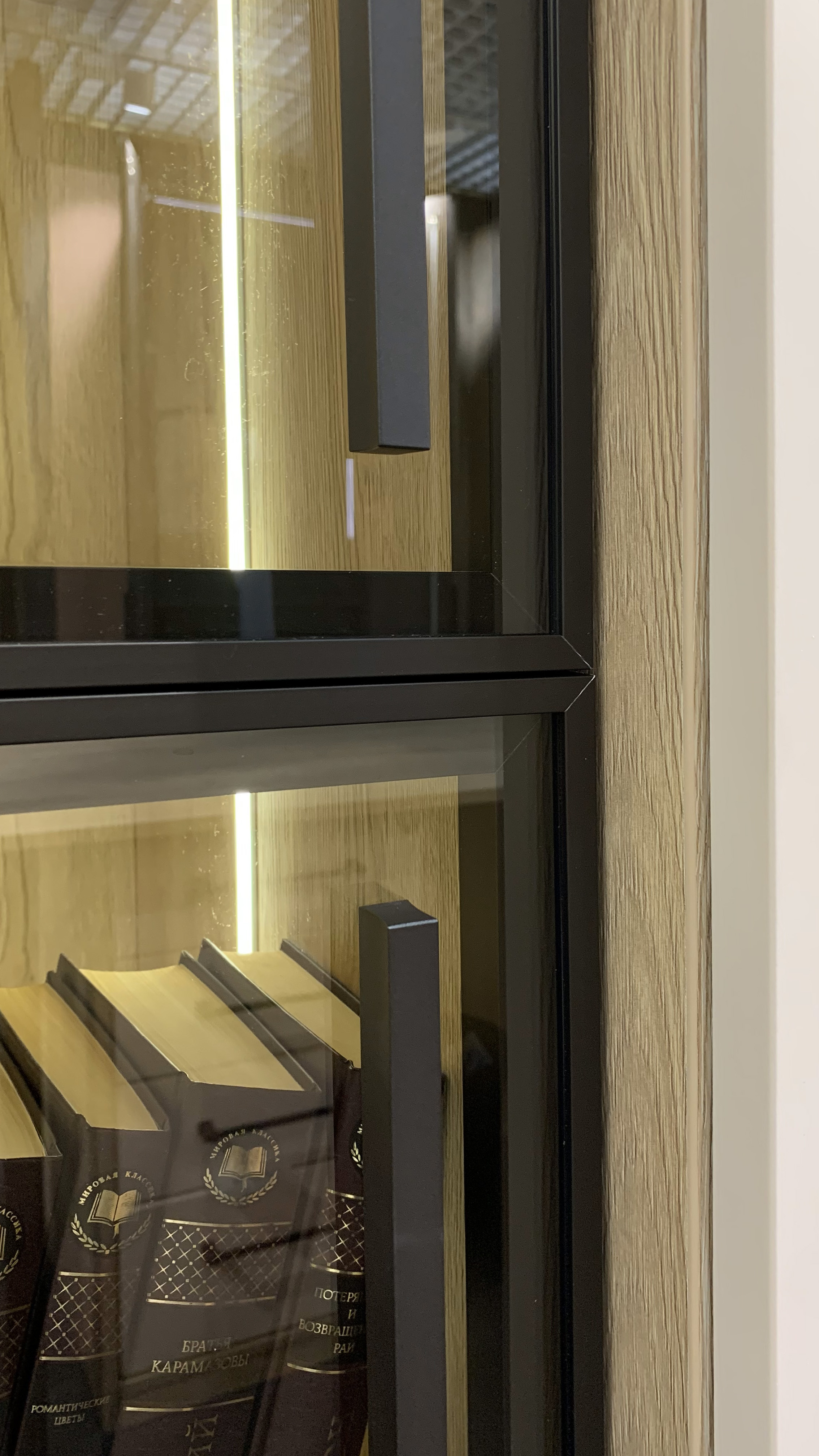 Фасад — МДФ суперматовый Бужевый, Коттон бежевый, стекло б/ц оптивайт