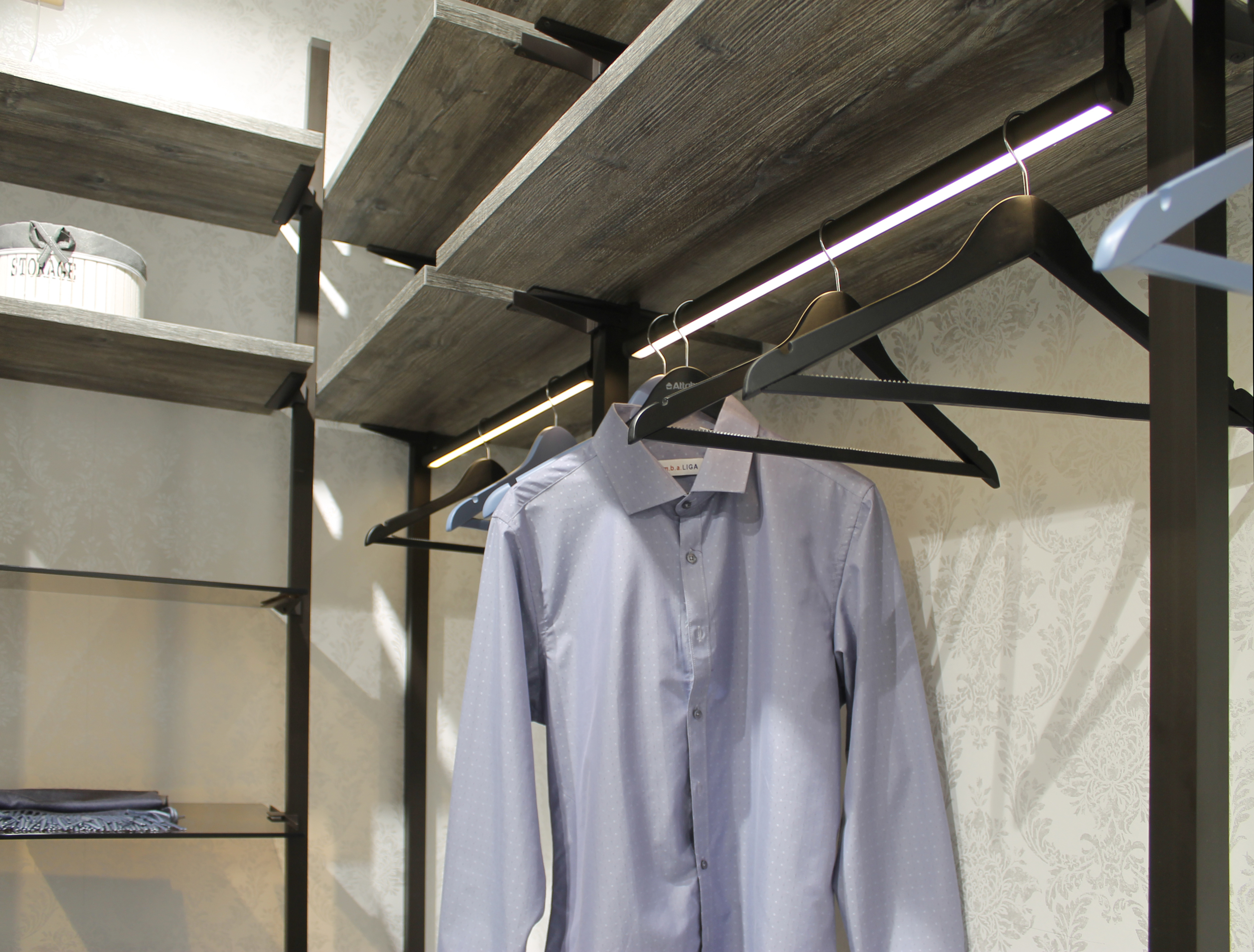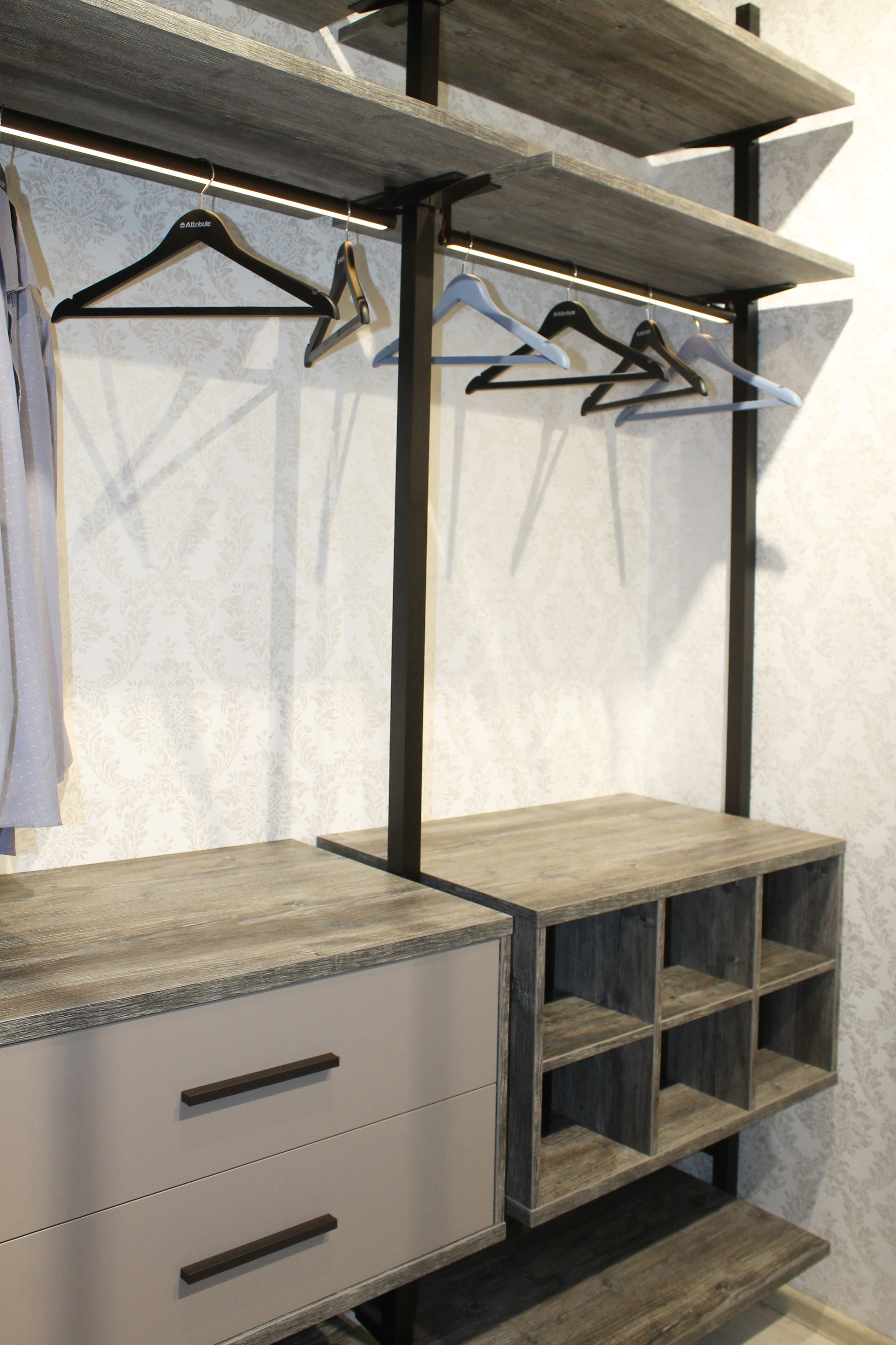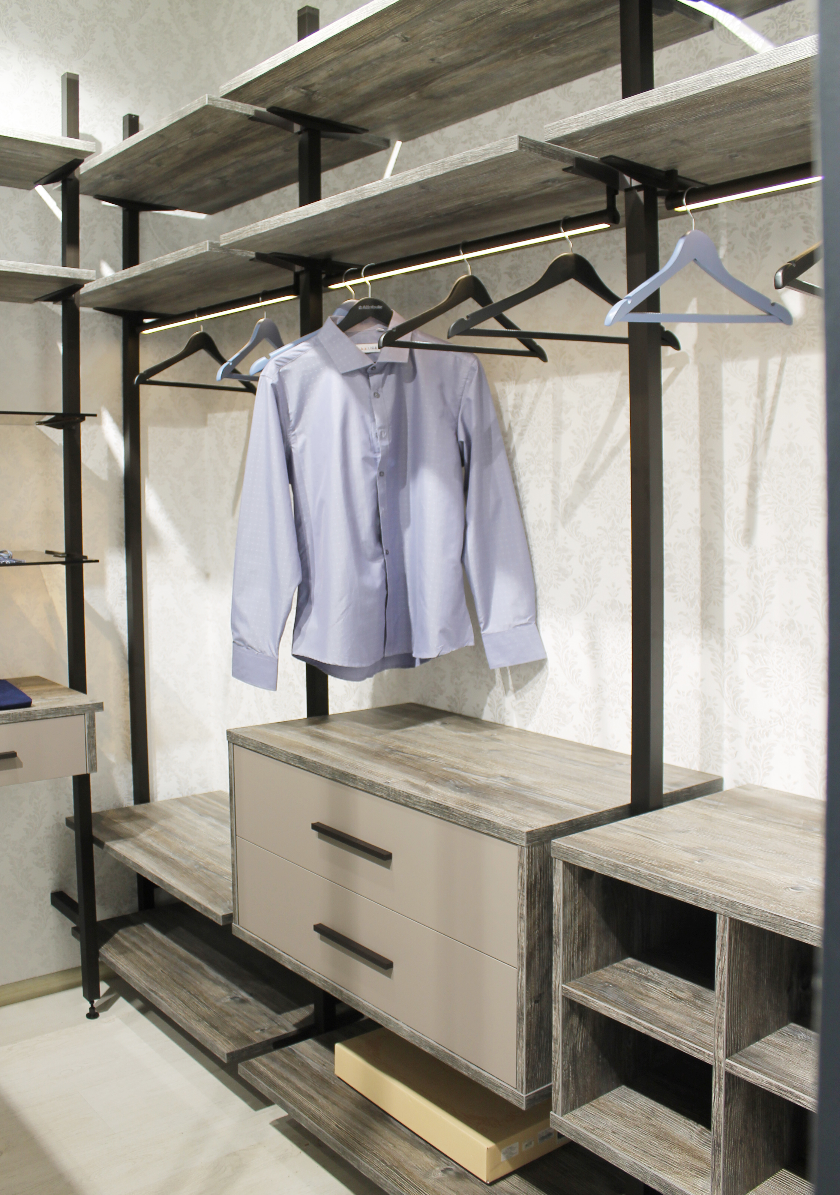 Гардеробная комната с использованием интерьерной системы #uno (Германия) - надежность и функциональность.