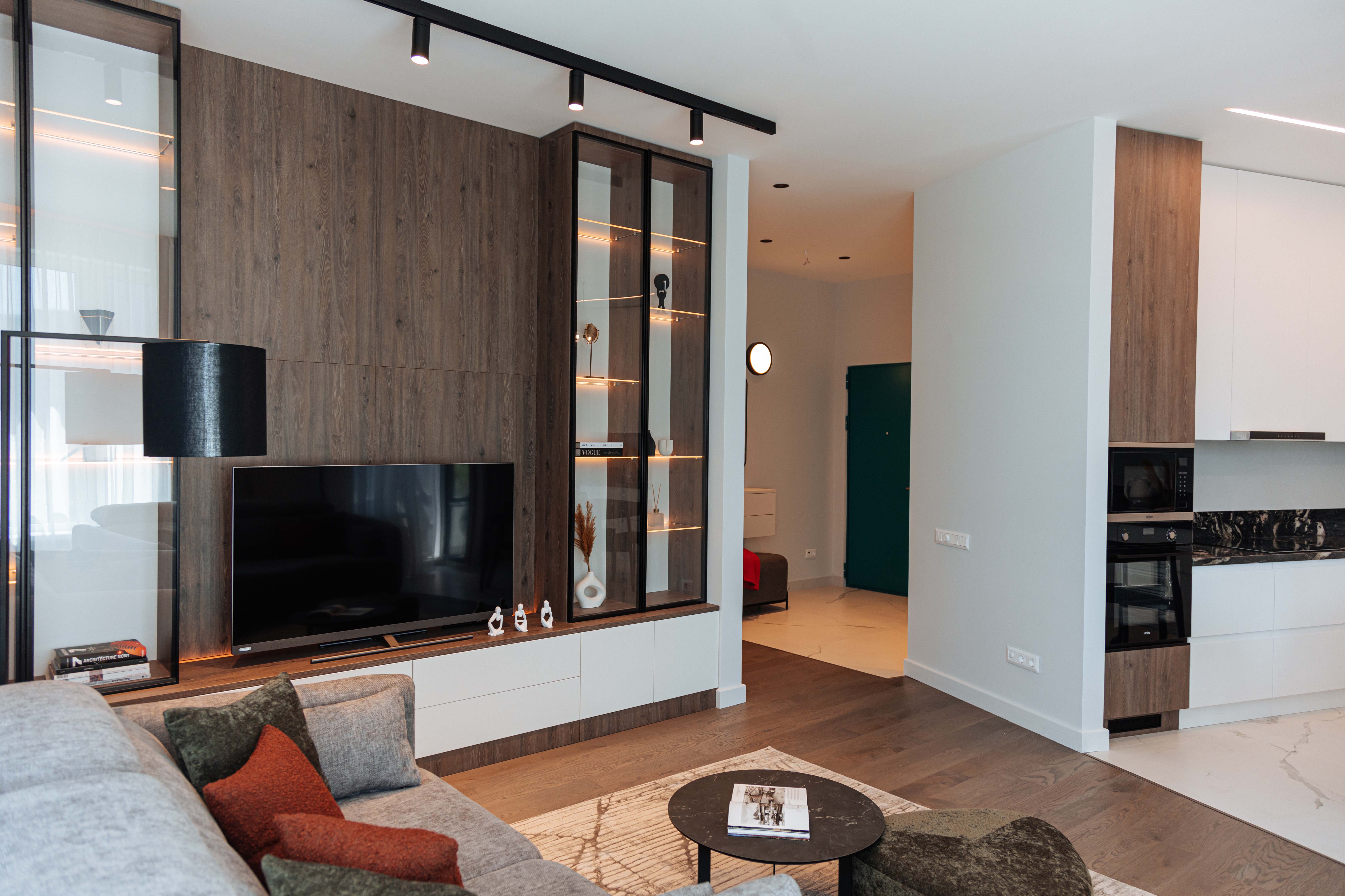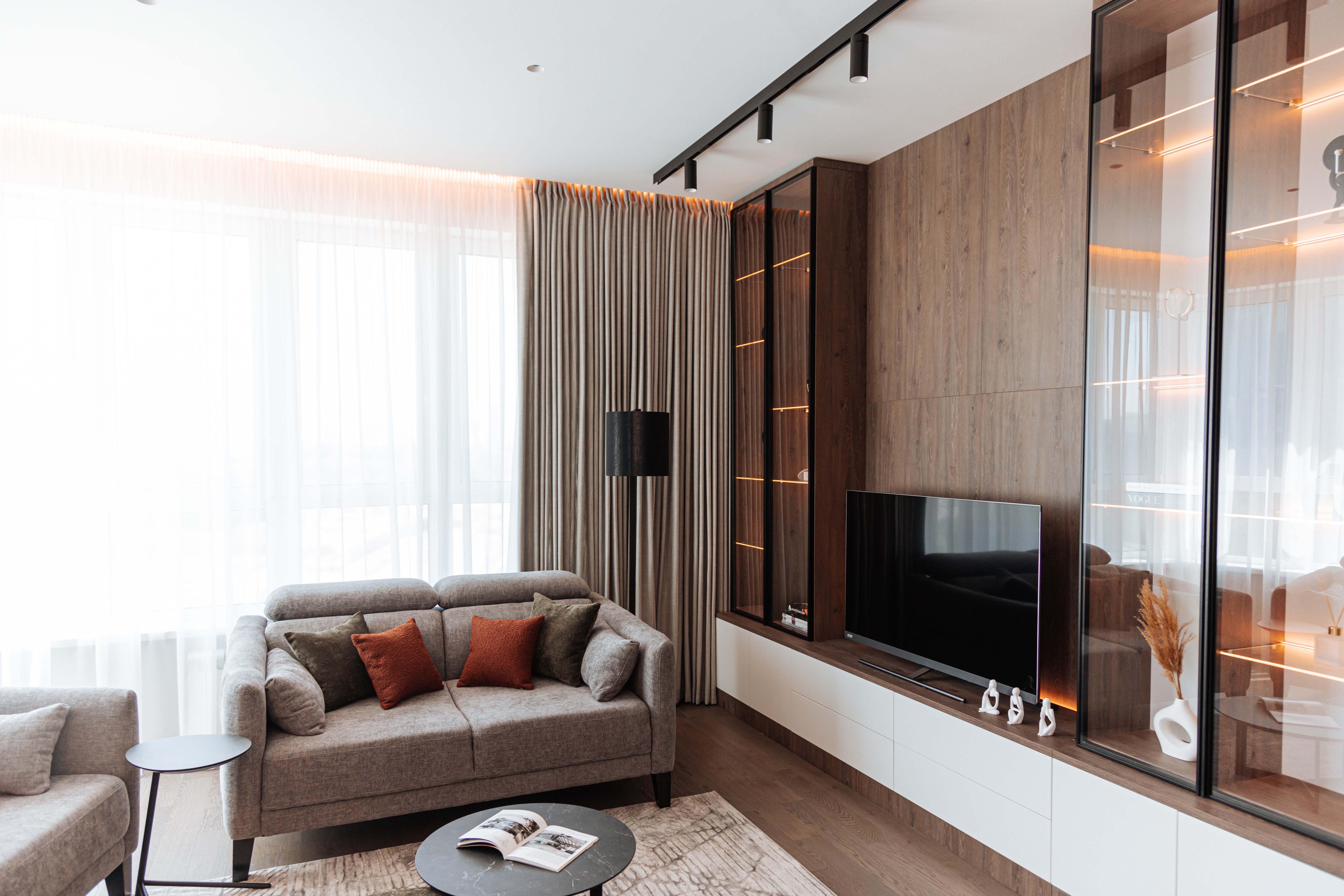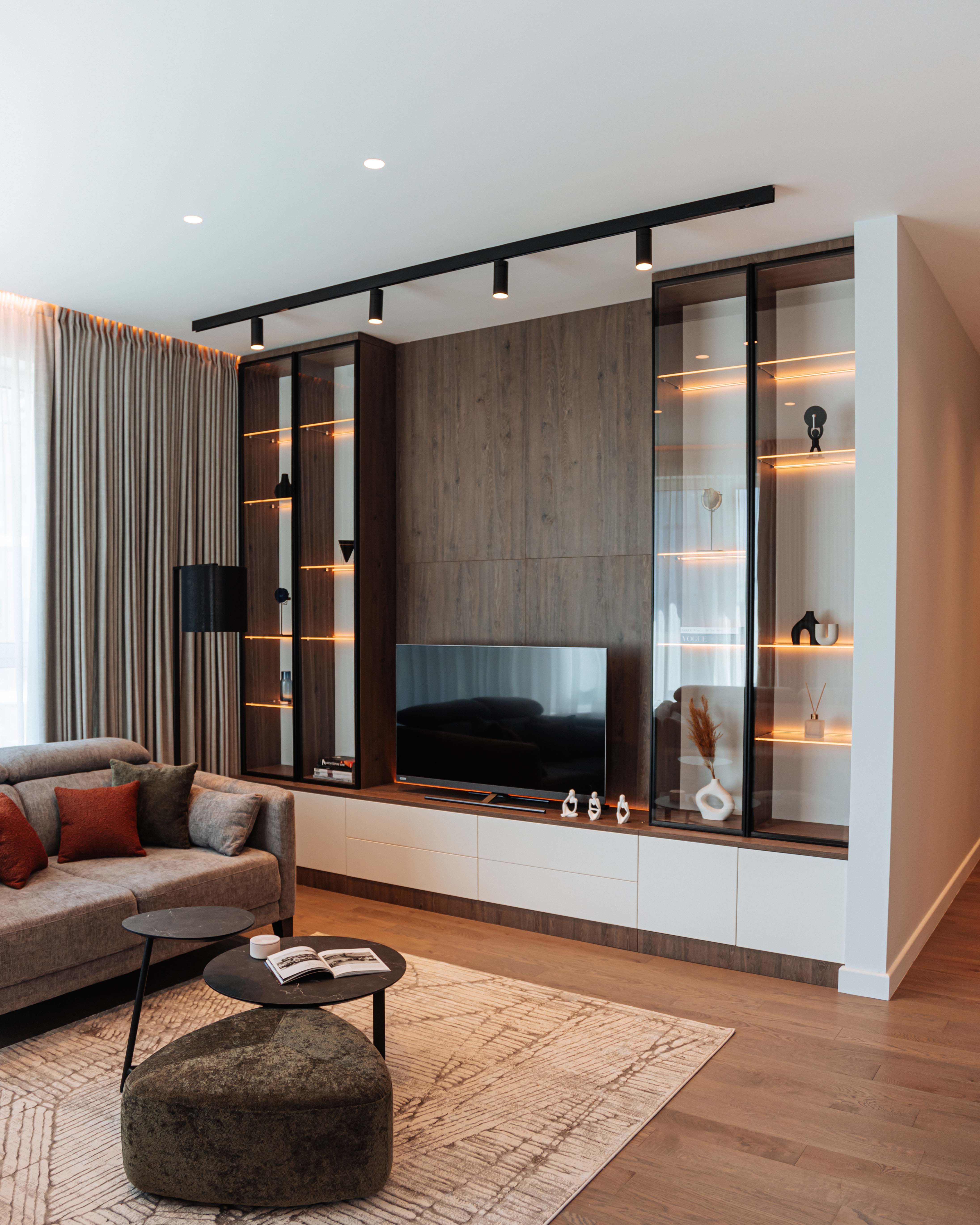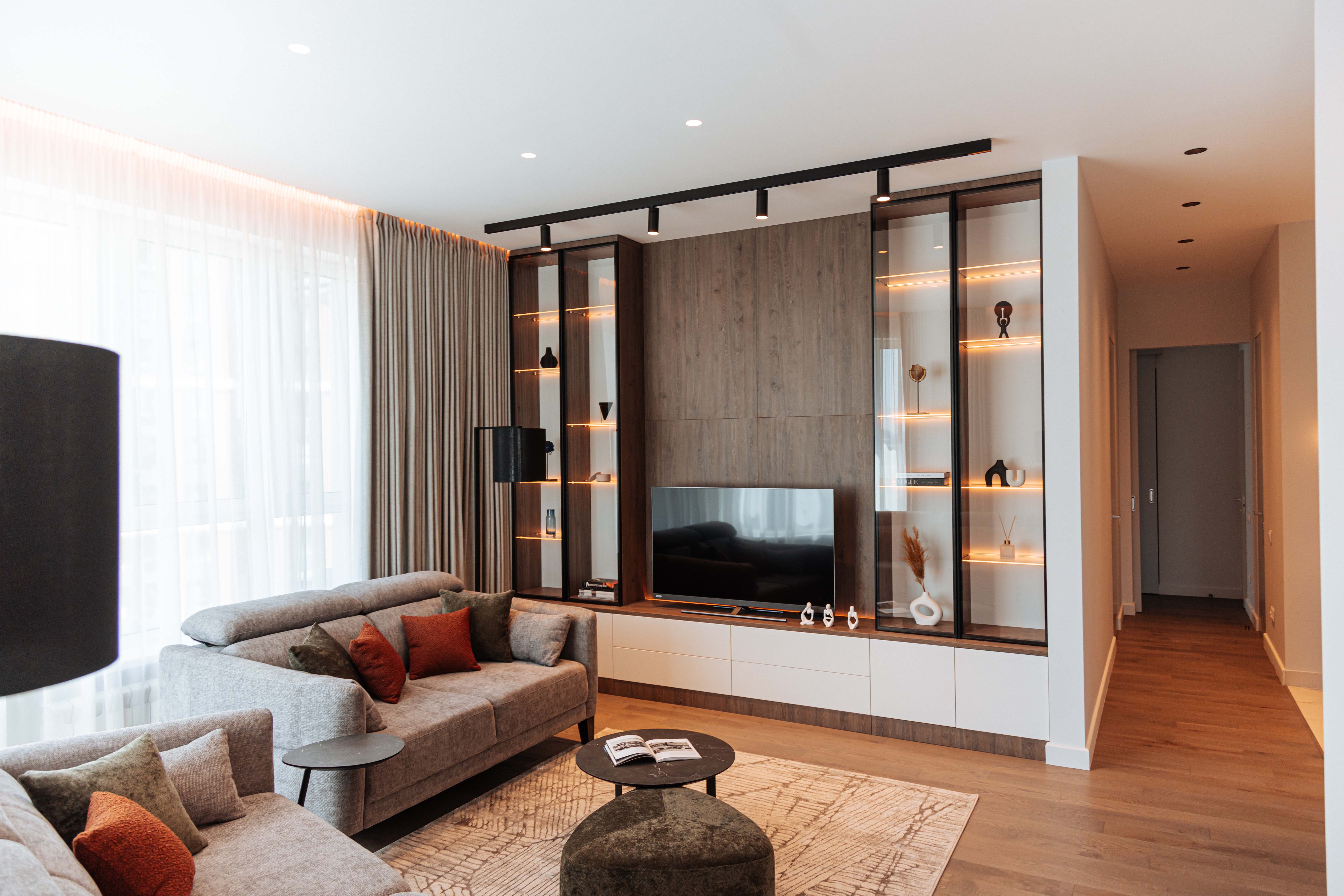 Гостиная с ТВ-зоной по индивидуальному проекту.