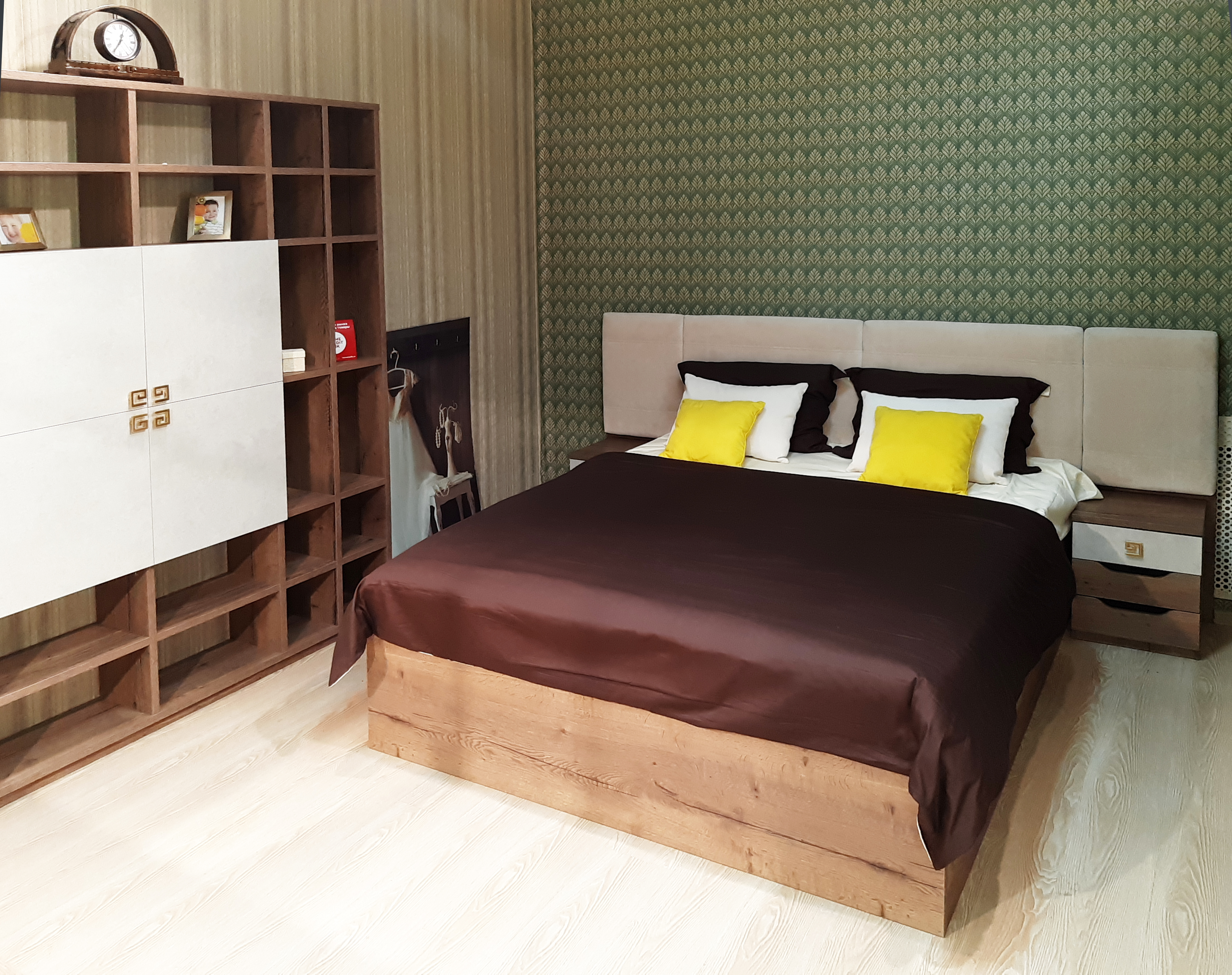 Кровать с мягким изголовьем (элементом) и подъемным механизмом