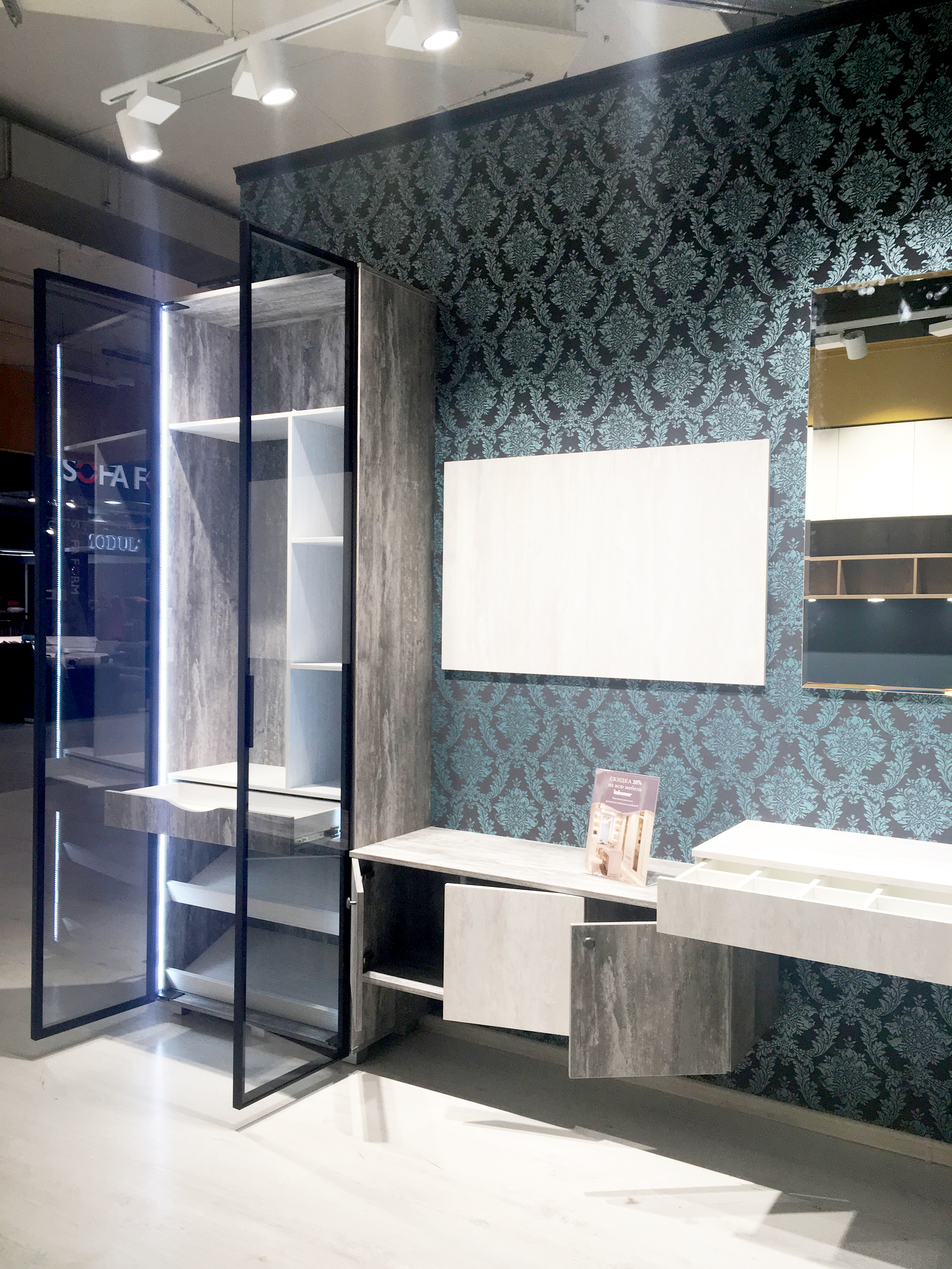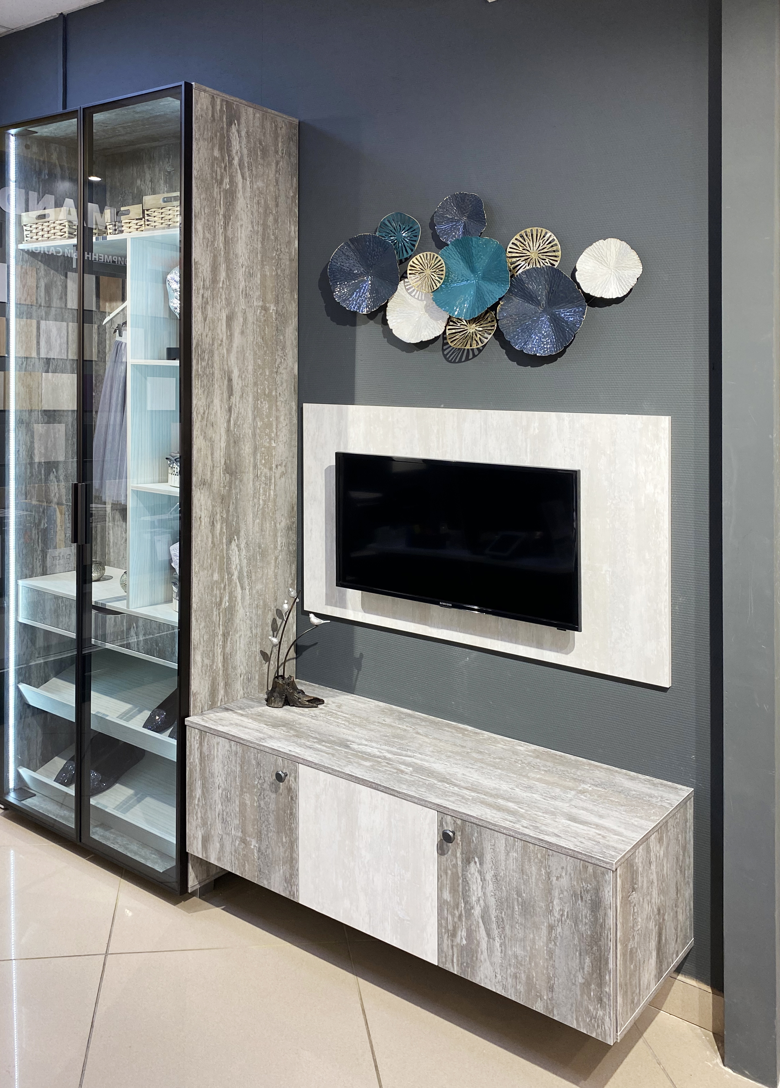 Фасад тв-зоны и туалетного столика - ЛДСП Alvic Ice cream -1, 2