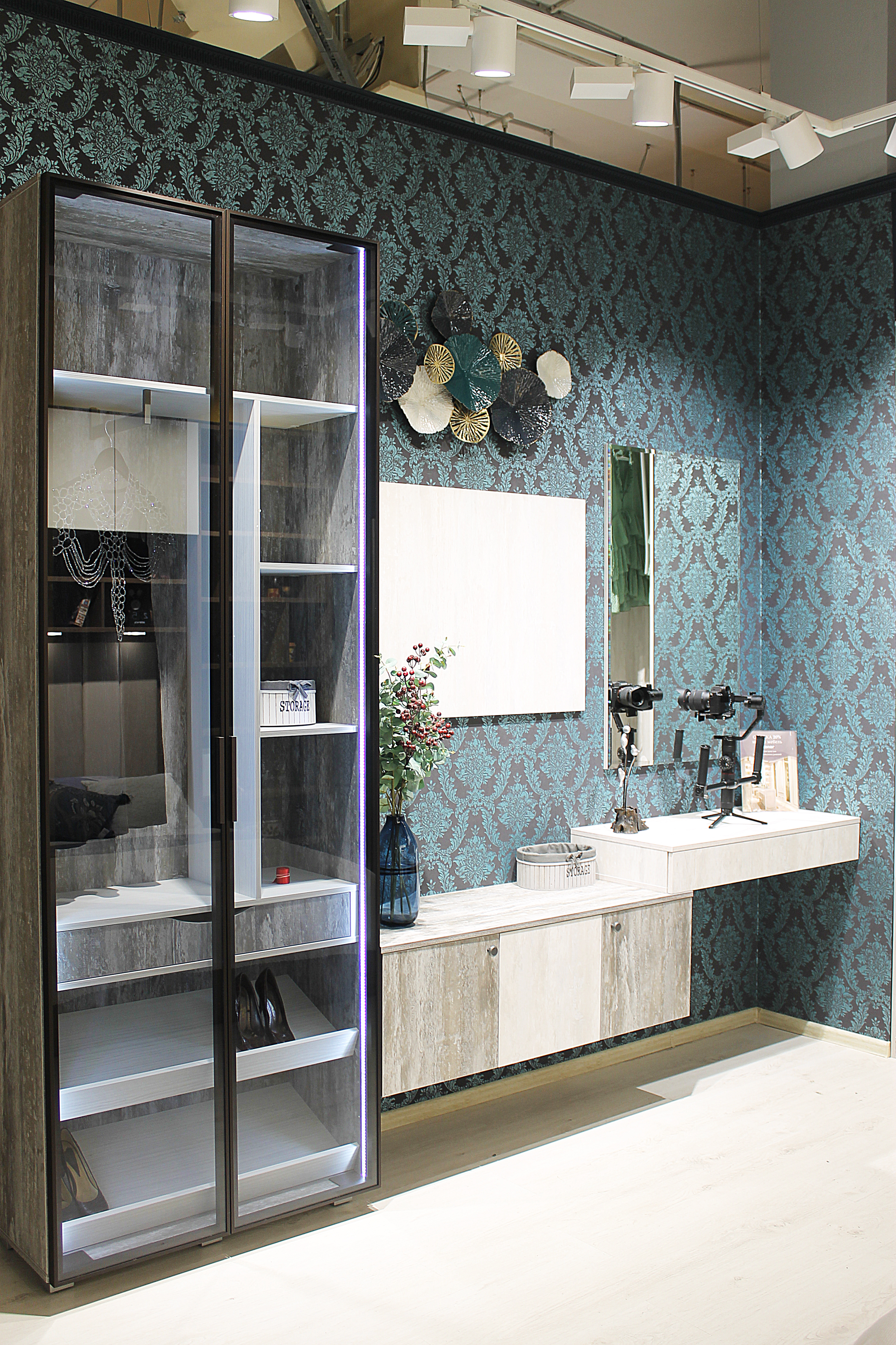 Подсветка шкафа по бокам придает ему некий шик и прозрачность.