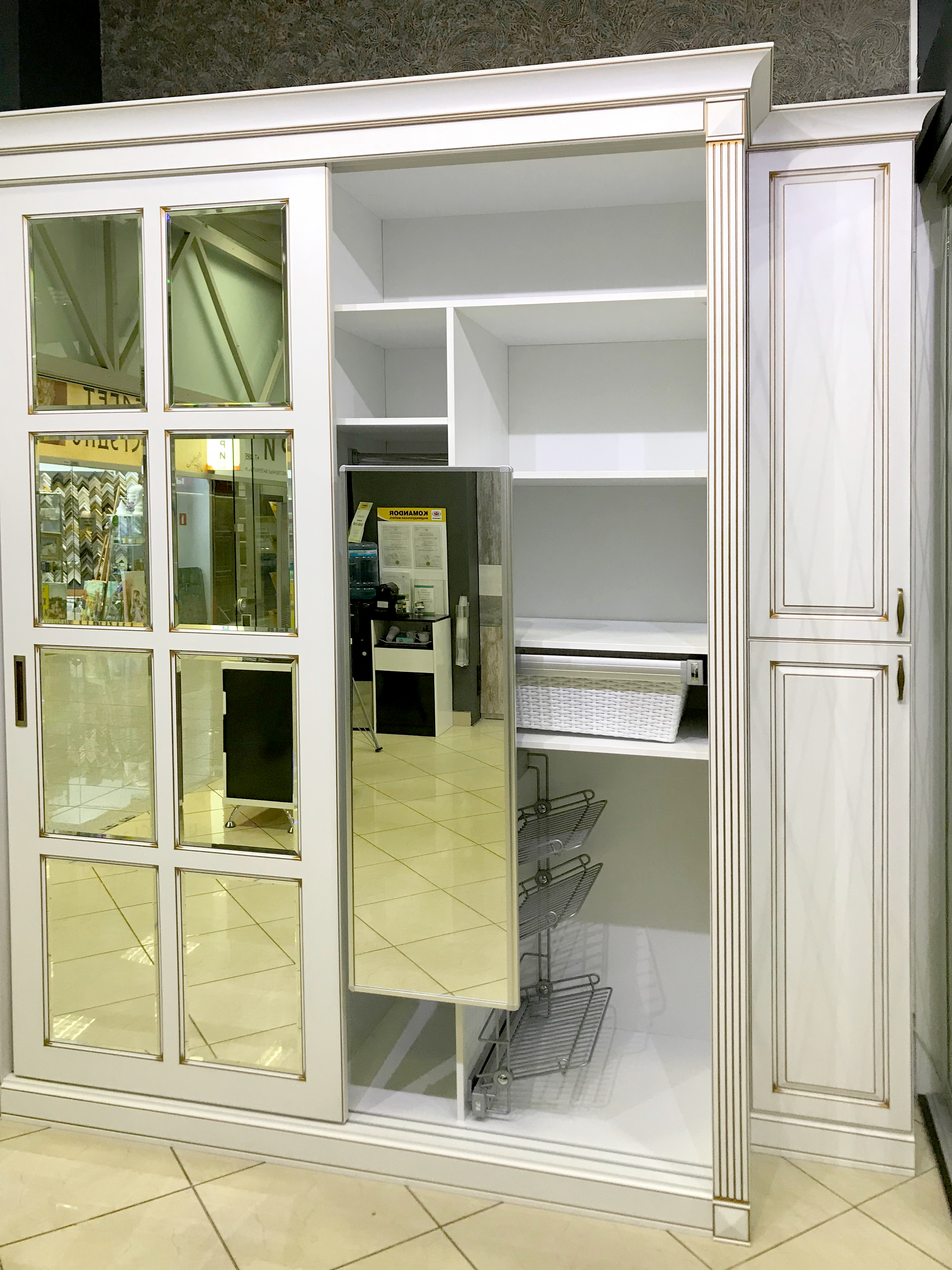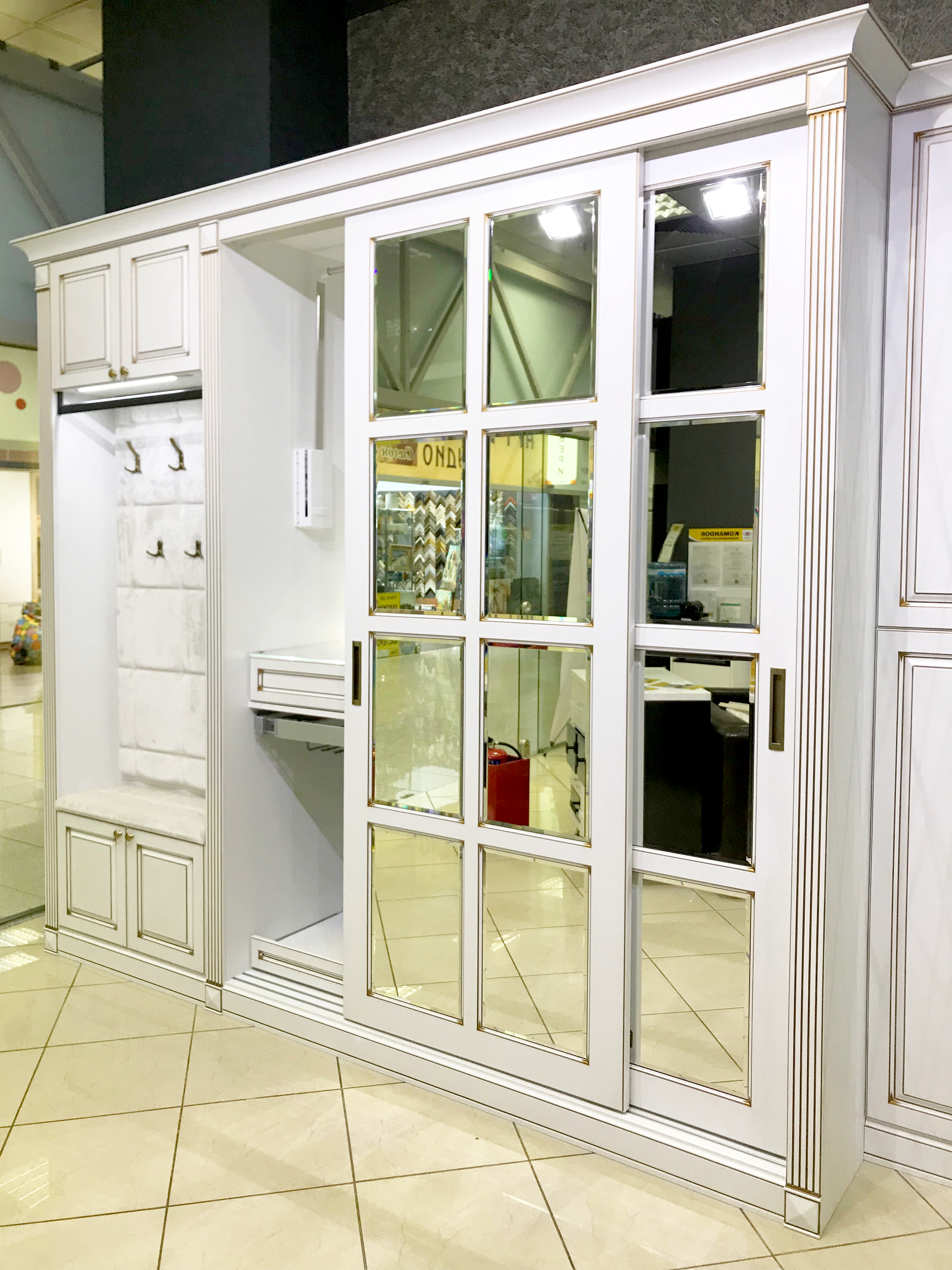 Фасад изделия - МДФ Эмаль с патиной бронза, зеркало серебро с фацетом 10 мм