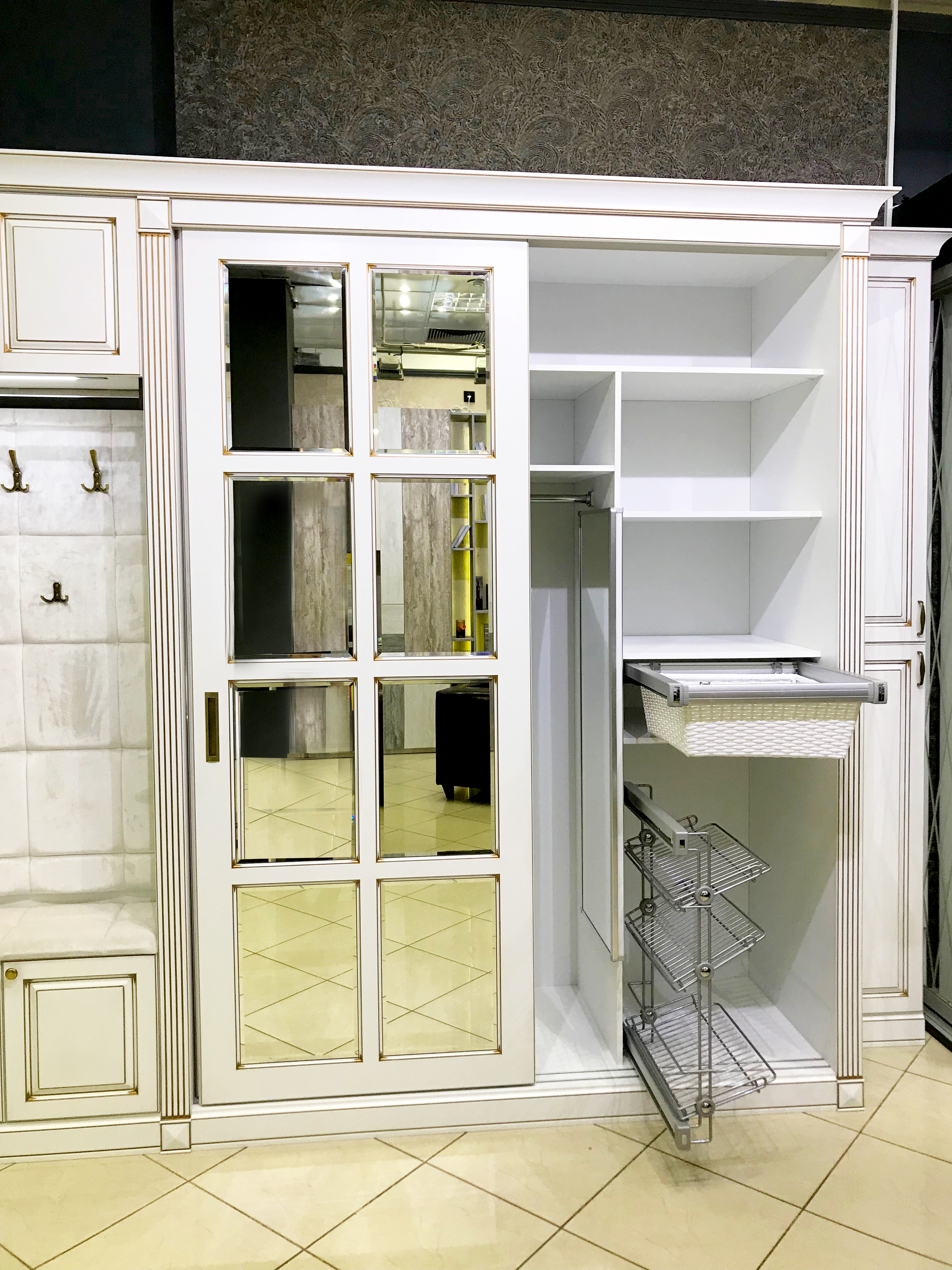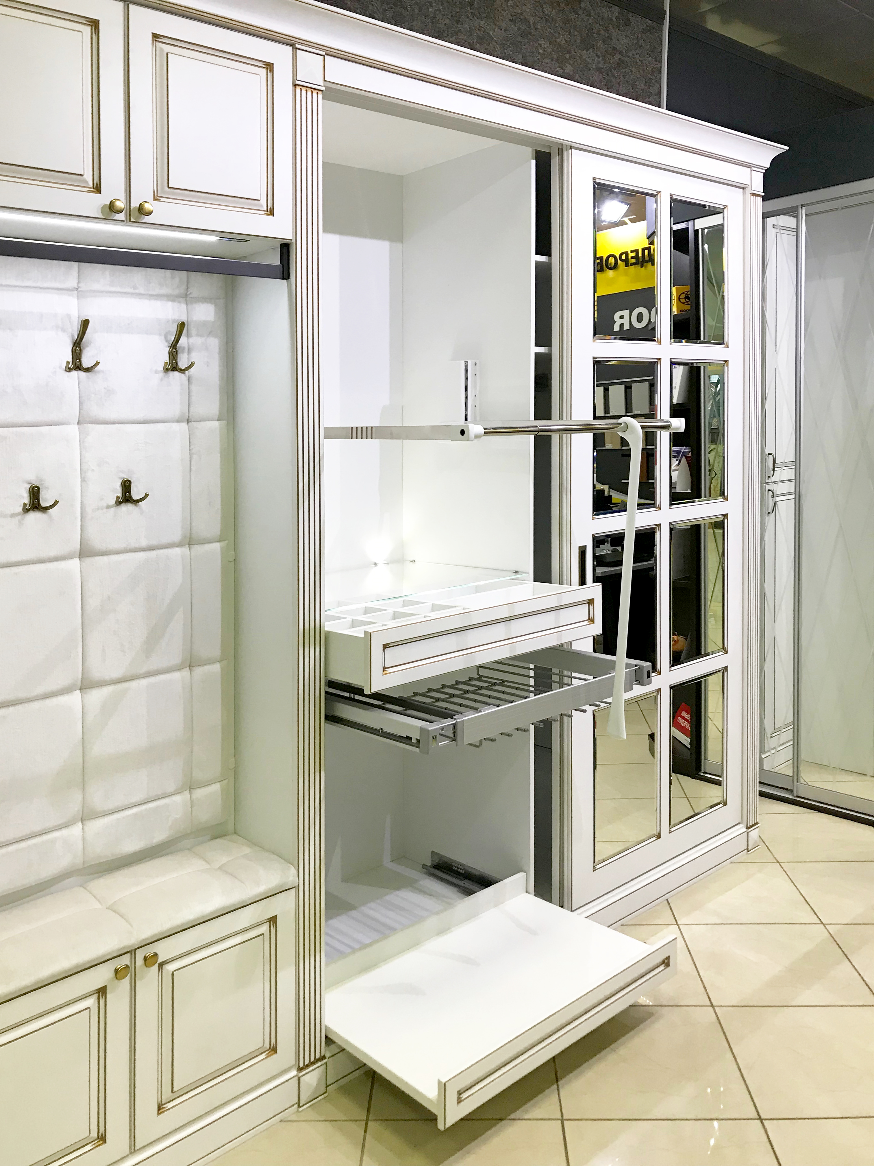 Внутренее наполнение - ящики на направляющих Tandem Plus Blumotion, Movento; полка для обуви, выдвижной держатель для одежды, держатель для брюк, штанга.
