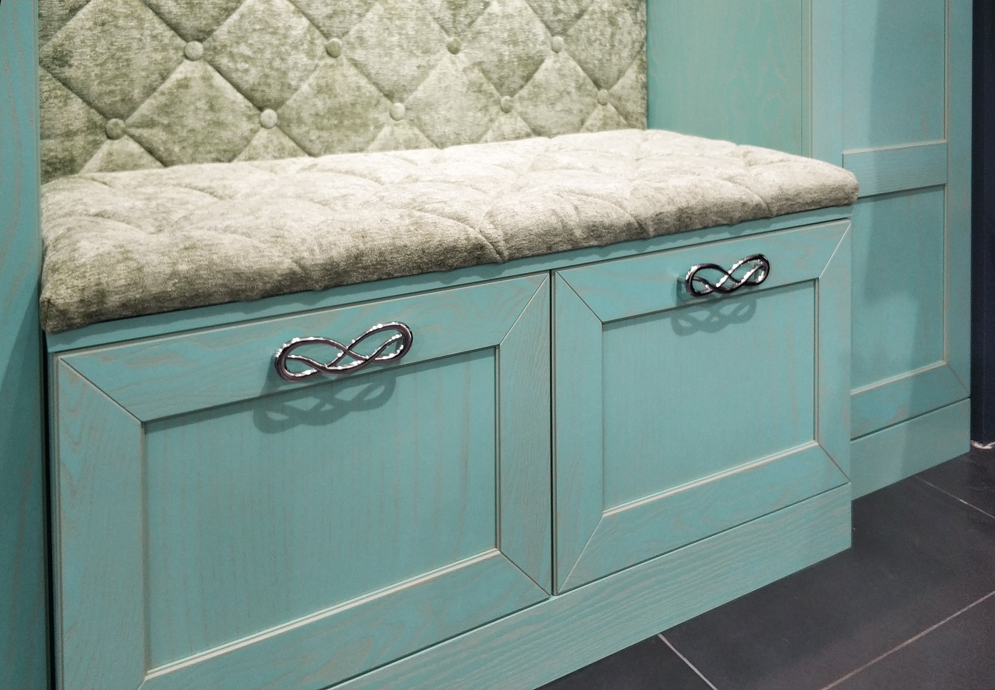 Фасад и корпус - шпон ясеня в цвете "Светло-зеленый" + патина