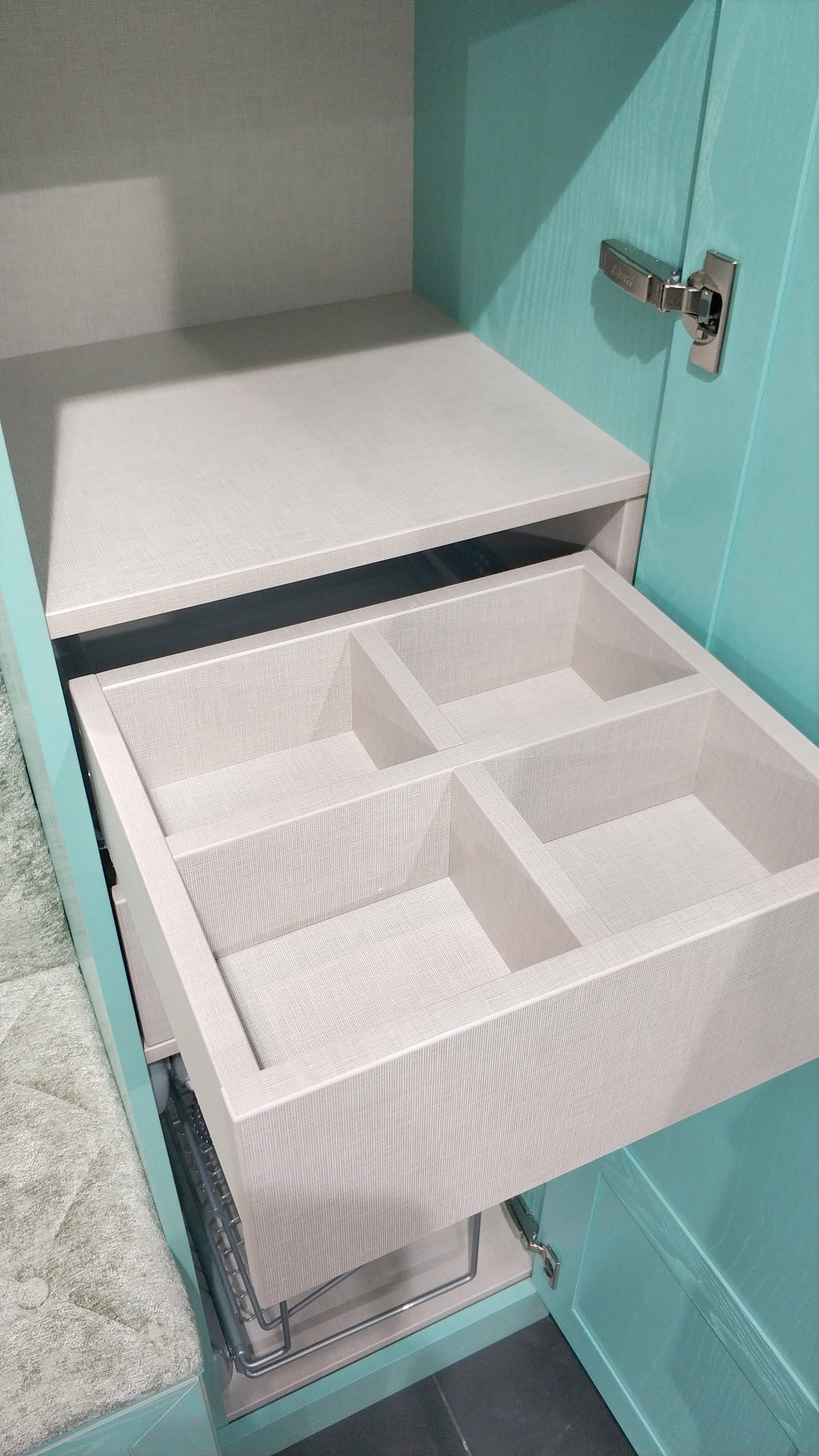 Внутреннее наполнение - ЛДСП лен бежевый F425 ST10. Ящики с направляющими Тандем плюс