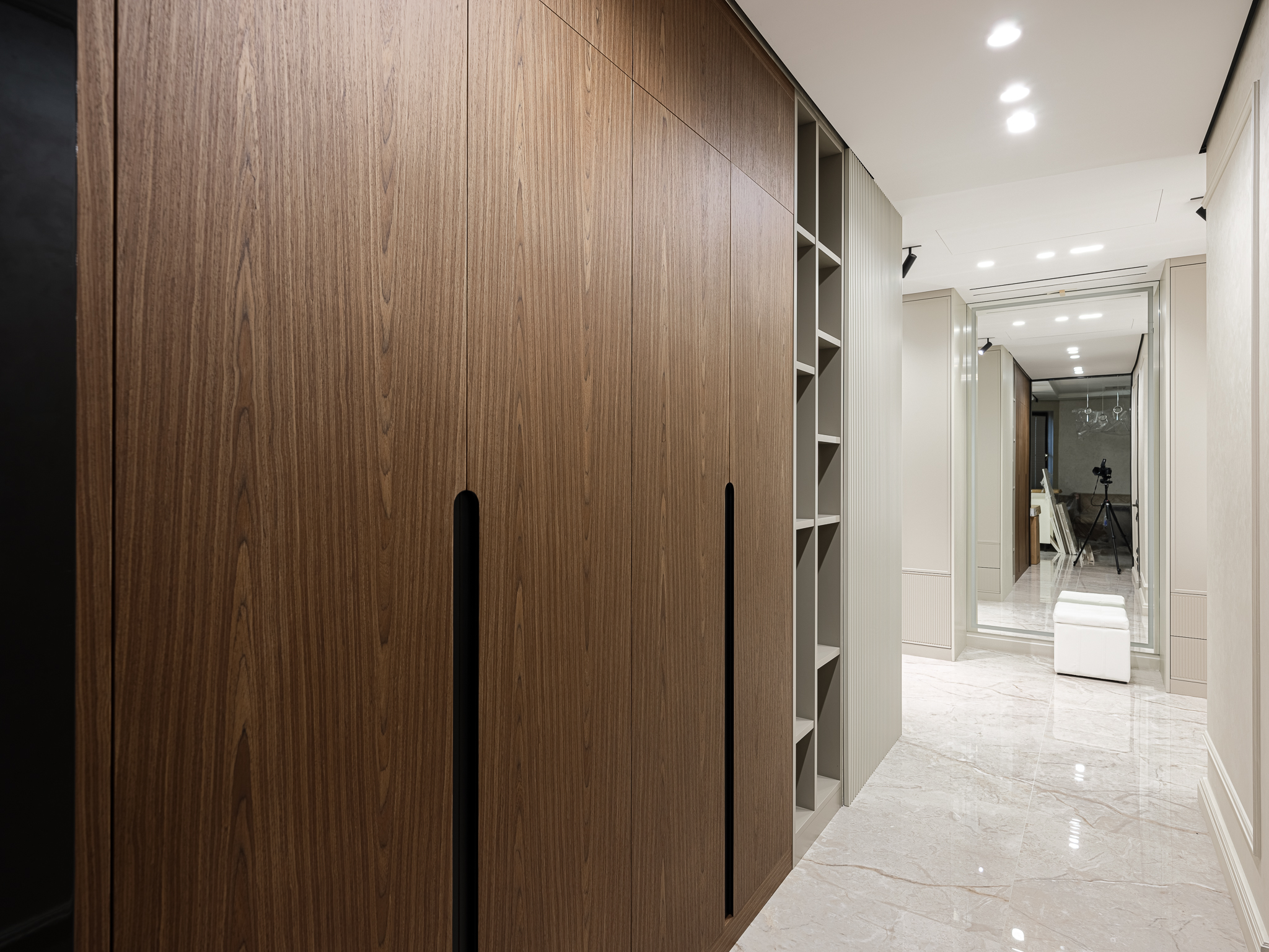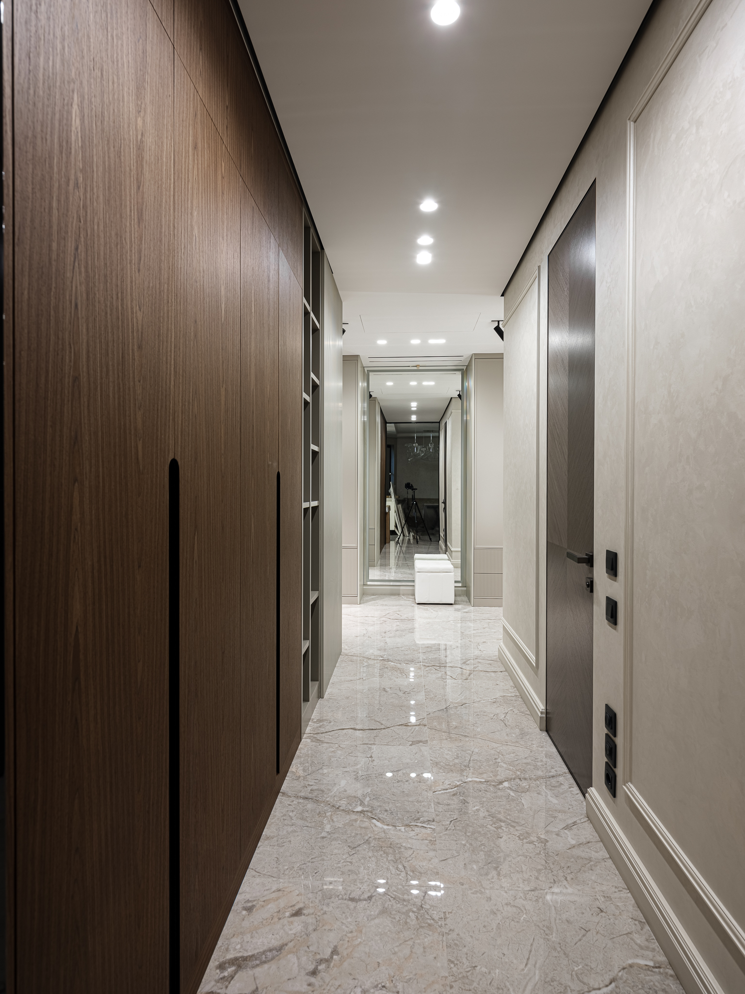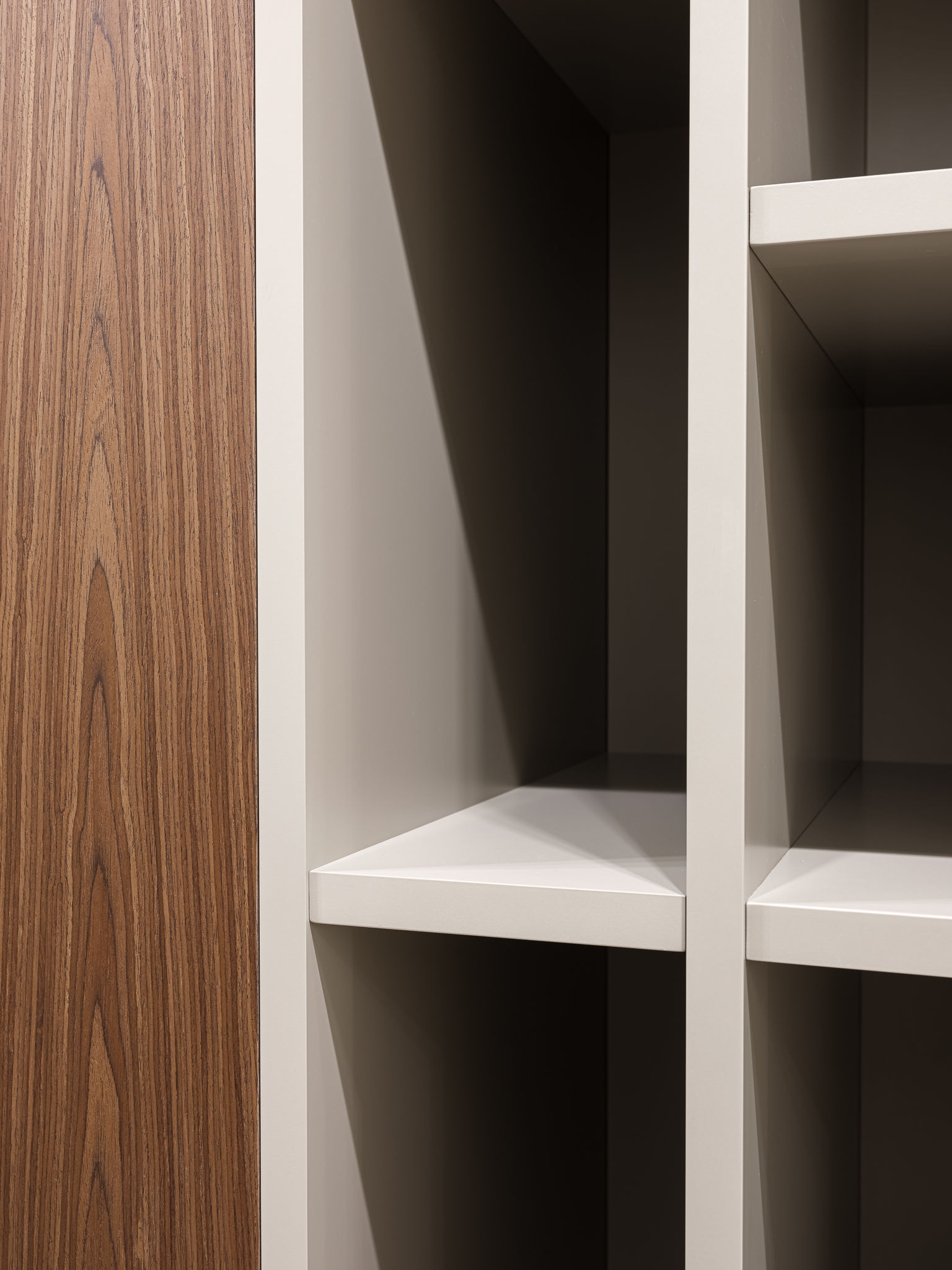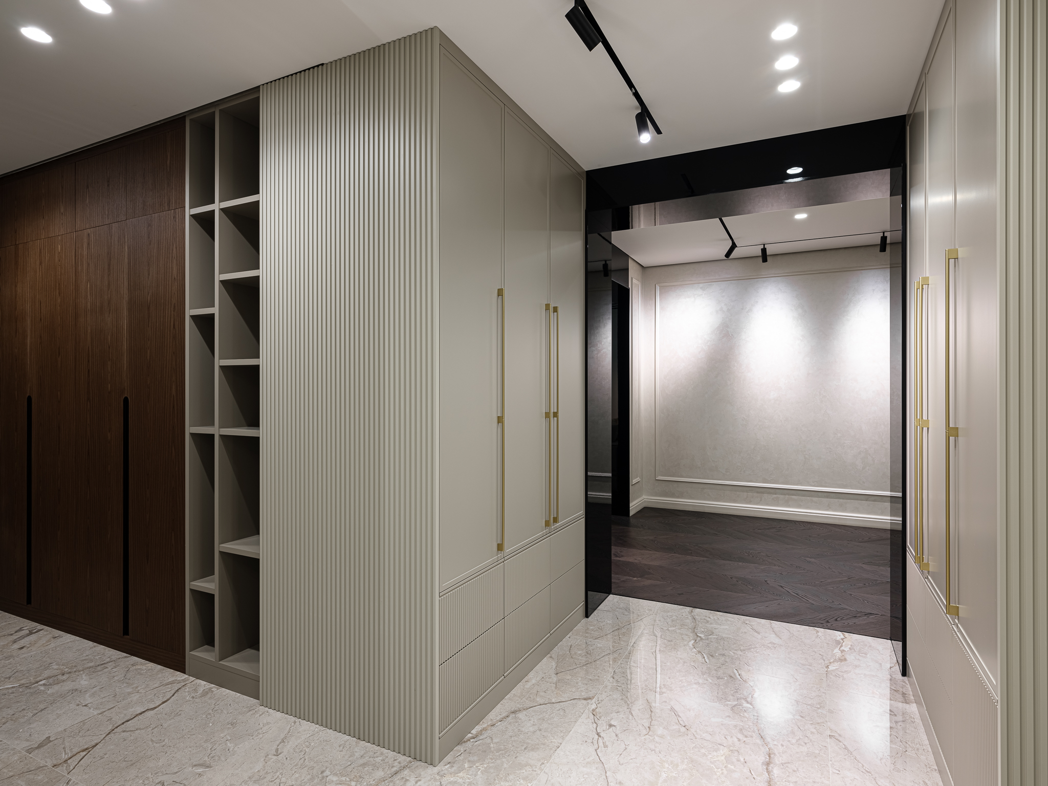 Распашной шкаф из шпона, который сочетает в себе элегантность и функциональность, обеспечивая удобное хранение вещей. Интегрированные ручки гармонично вписываются в дизайн шкафа, делая его внешний вид более современным и стильным.