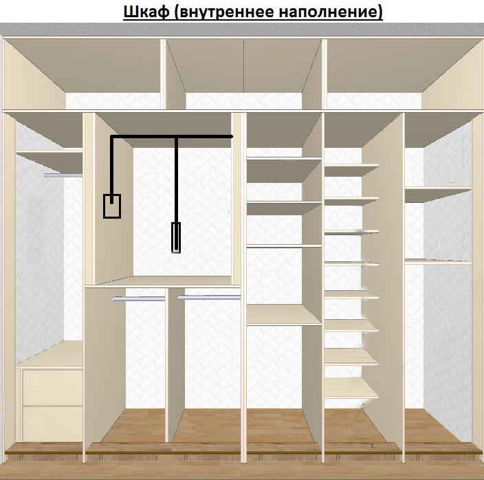Внутреннее наполнение - полки, ящики, пантограф, труба горизонтальная