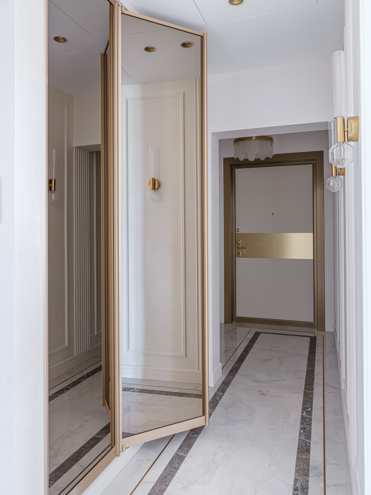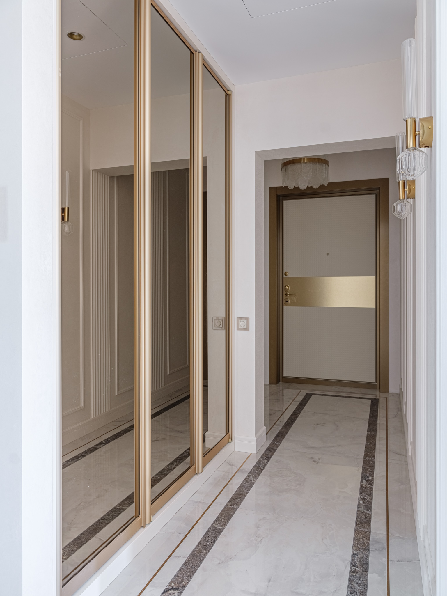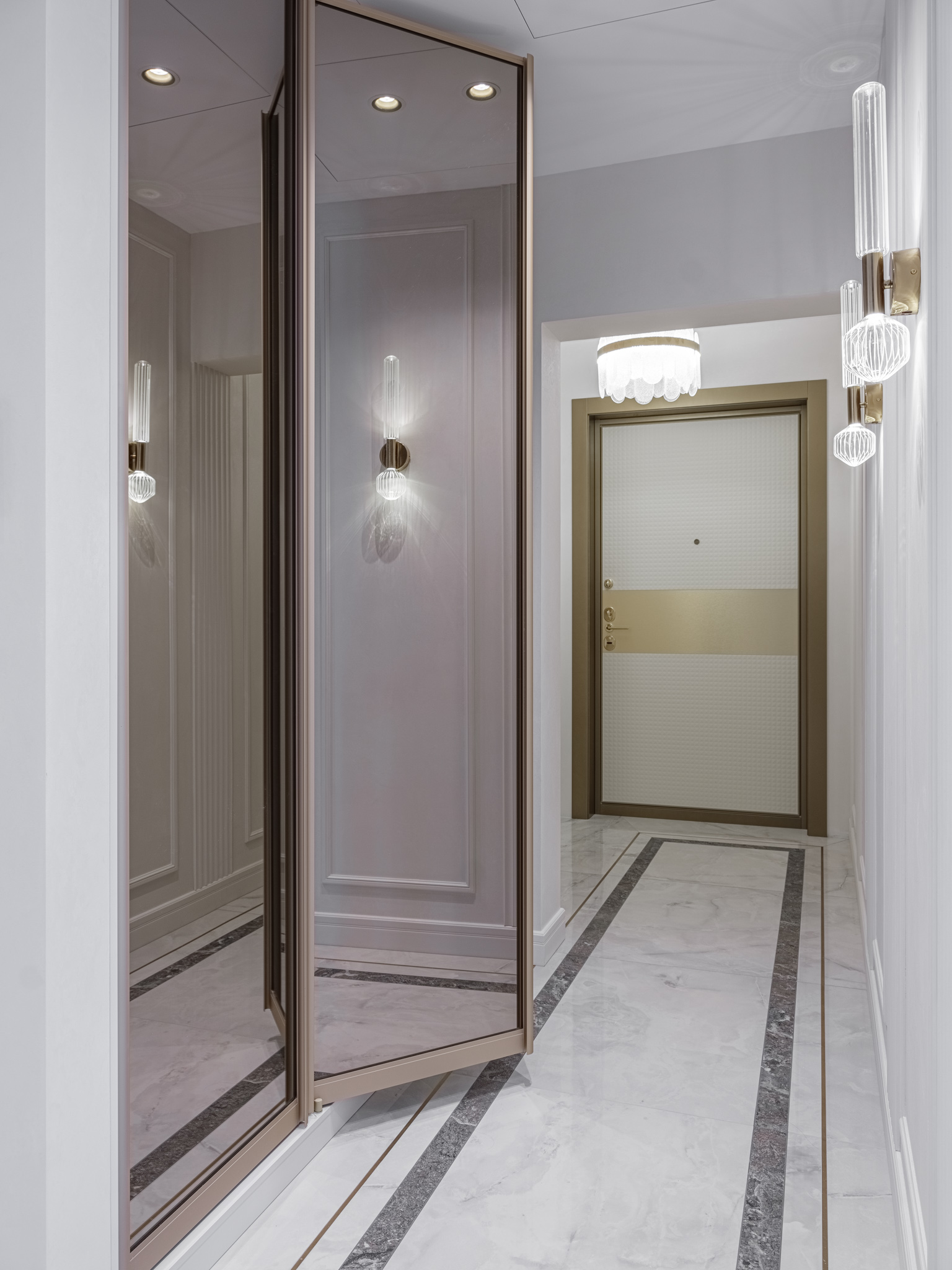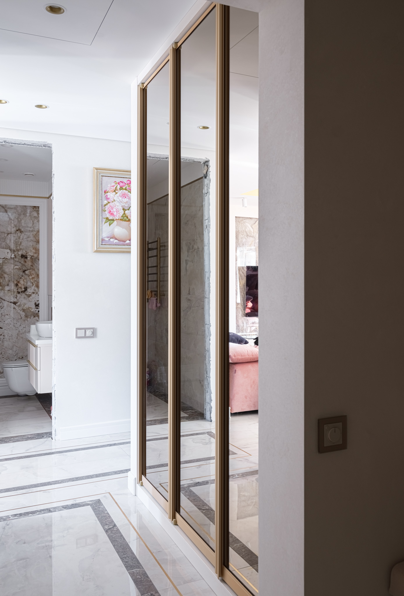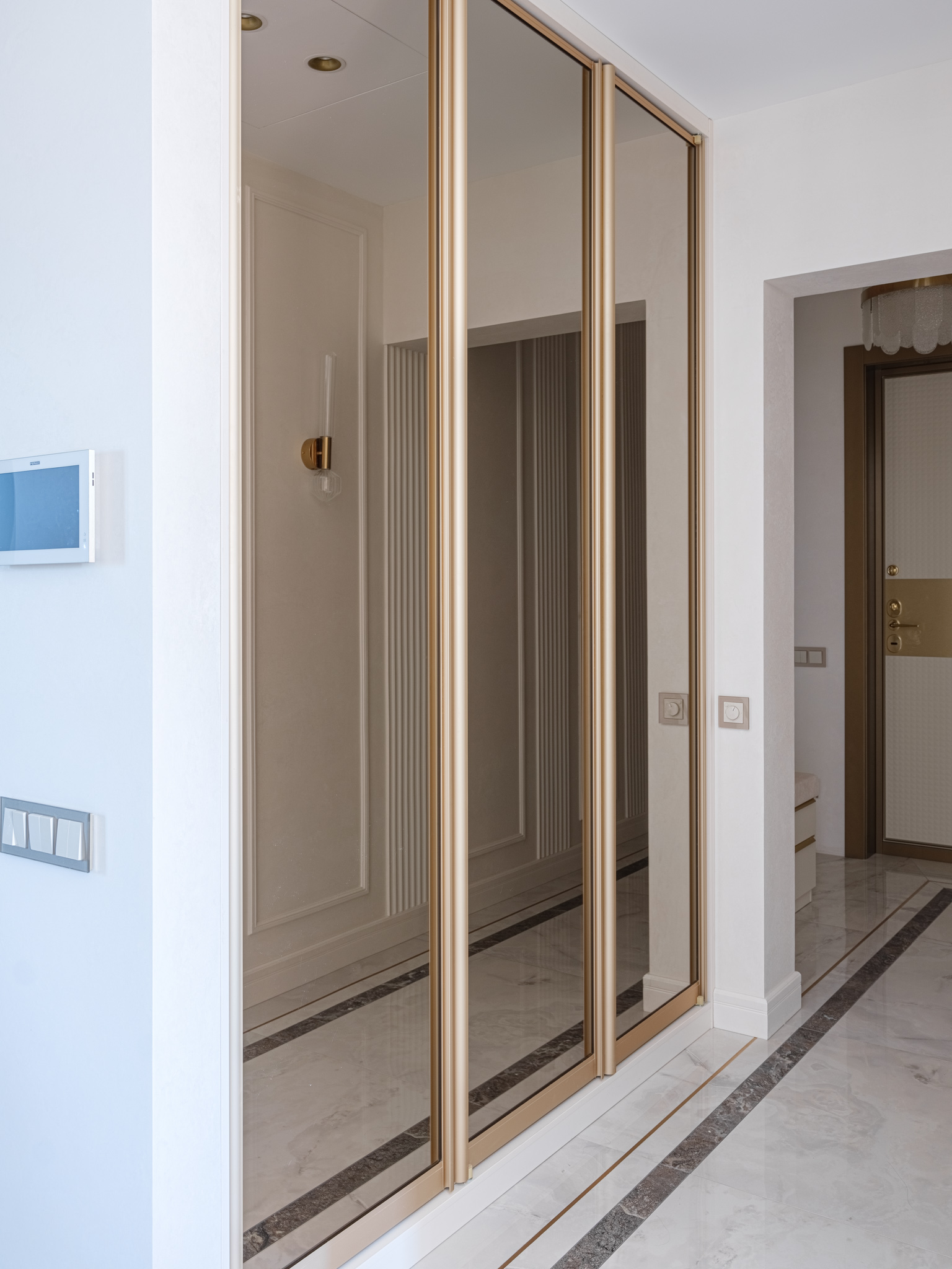 Шкаф с зеркальным фасадом одинаково выигрышно будет выглядеть в прихожей и спальне. Зеркала от пола до потолка зрительно увеличат узкий коридор, добавят естественного освещения в темной комнате.