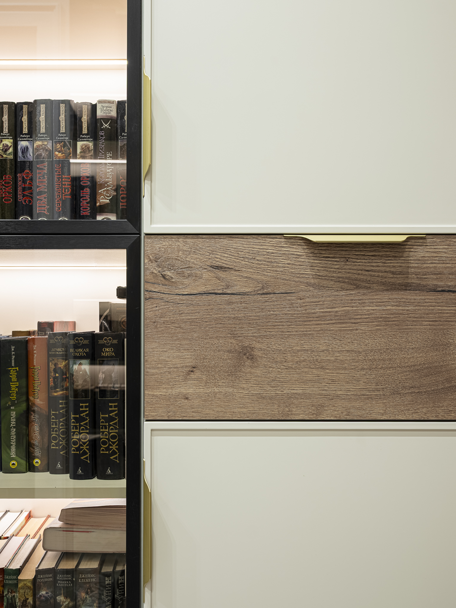 Фасад — МДФ эмаль с интегрированной ручкой, шпон Джерси