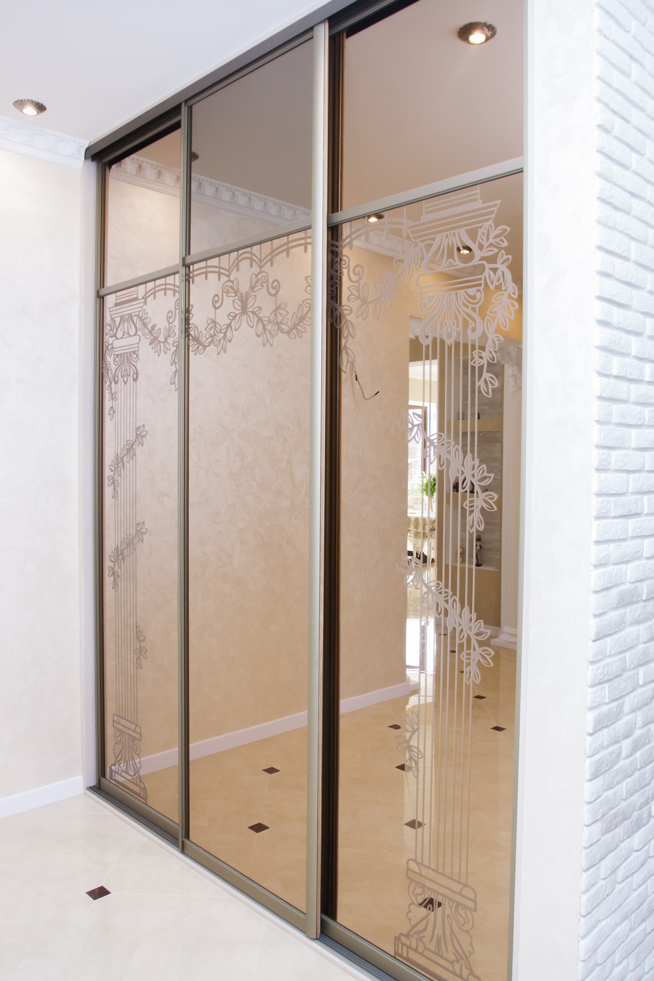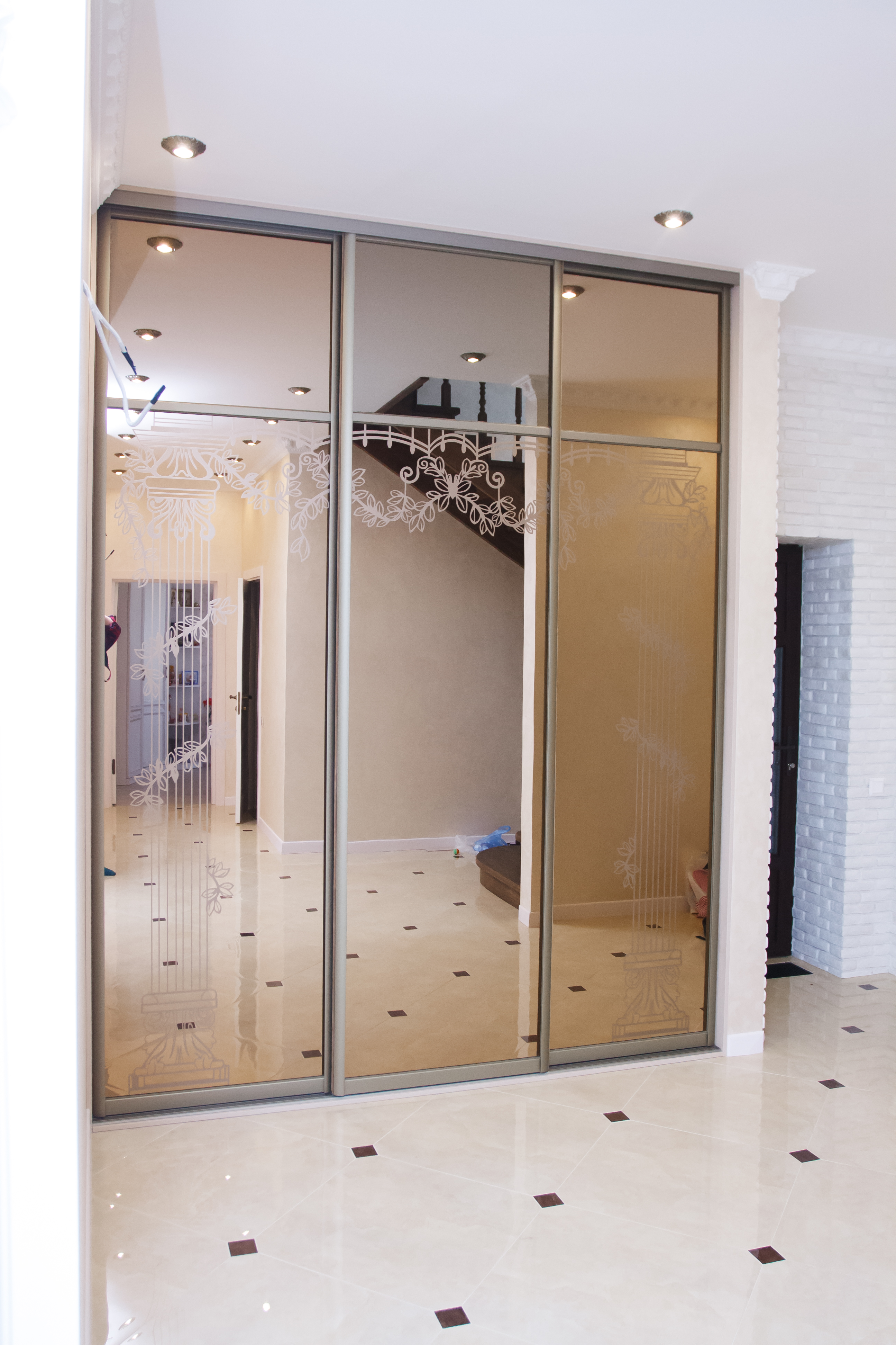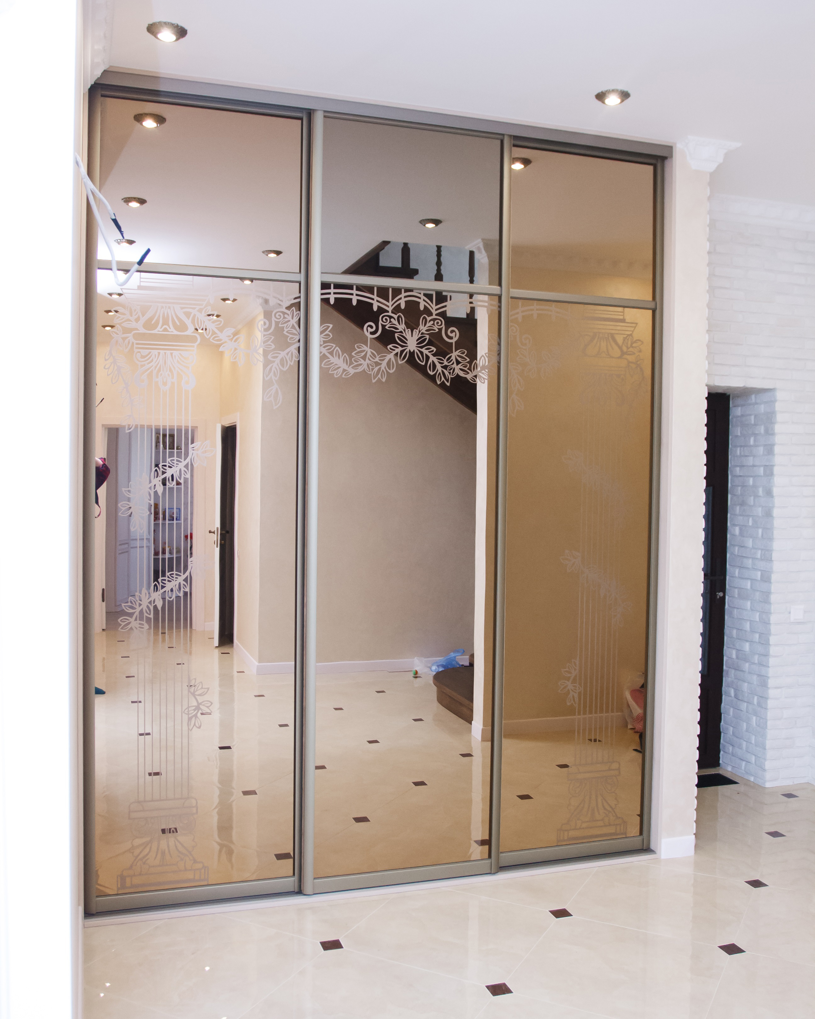Фасад изделия - зеркало бронза с пескоструйной обработкой