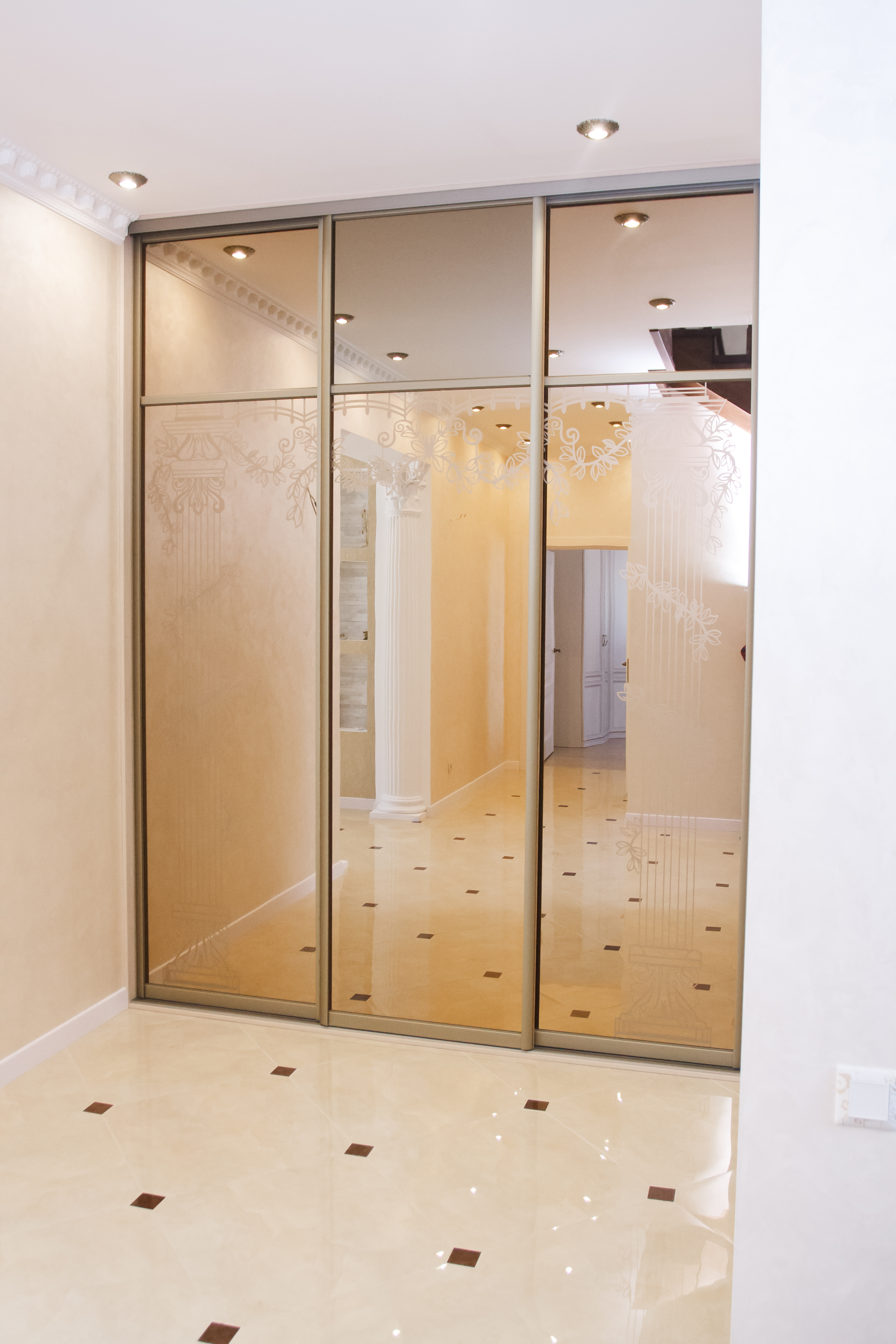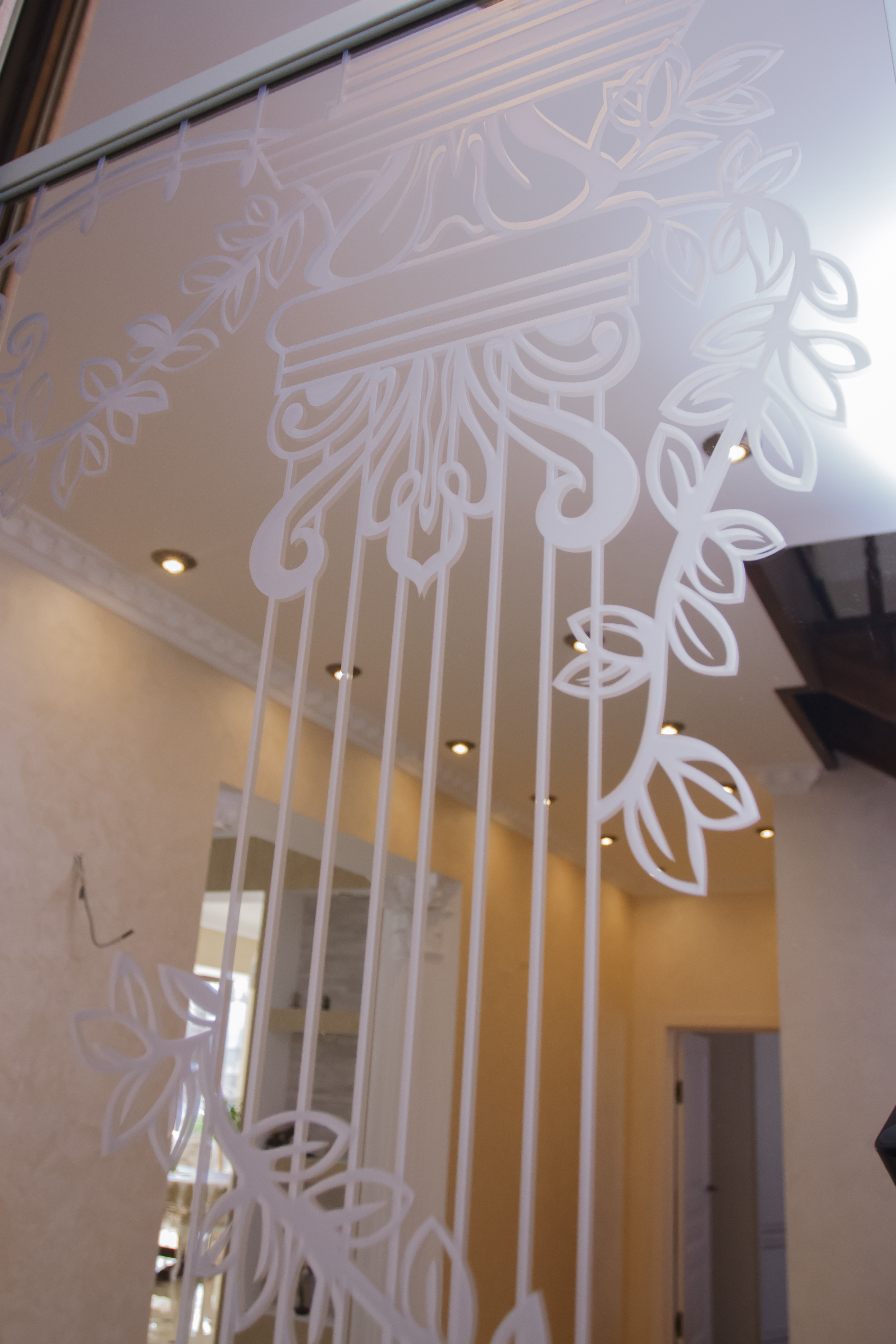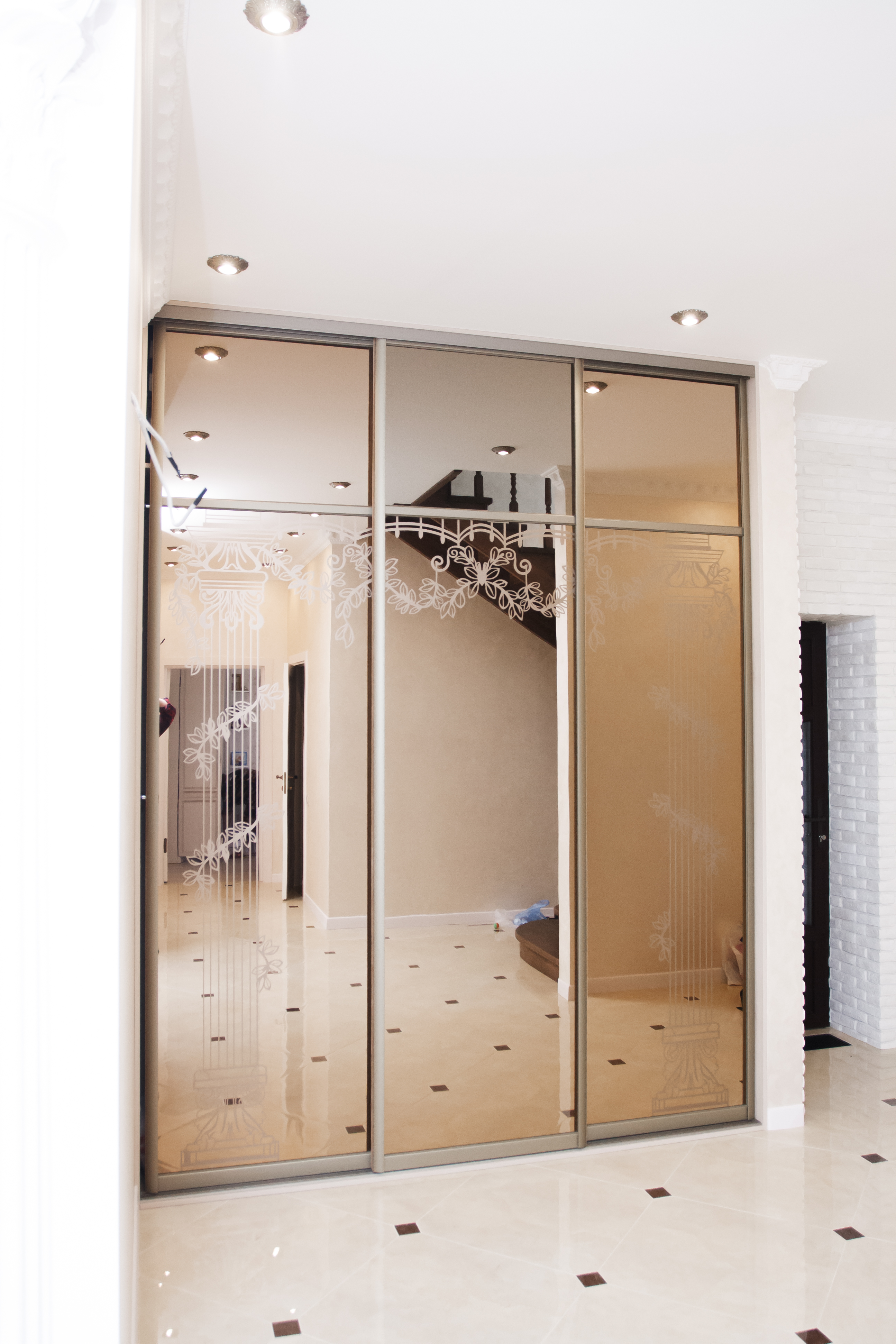 Фасад изделия - зеркало бронза с пескоструйной обработкой