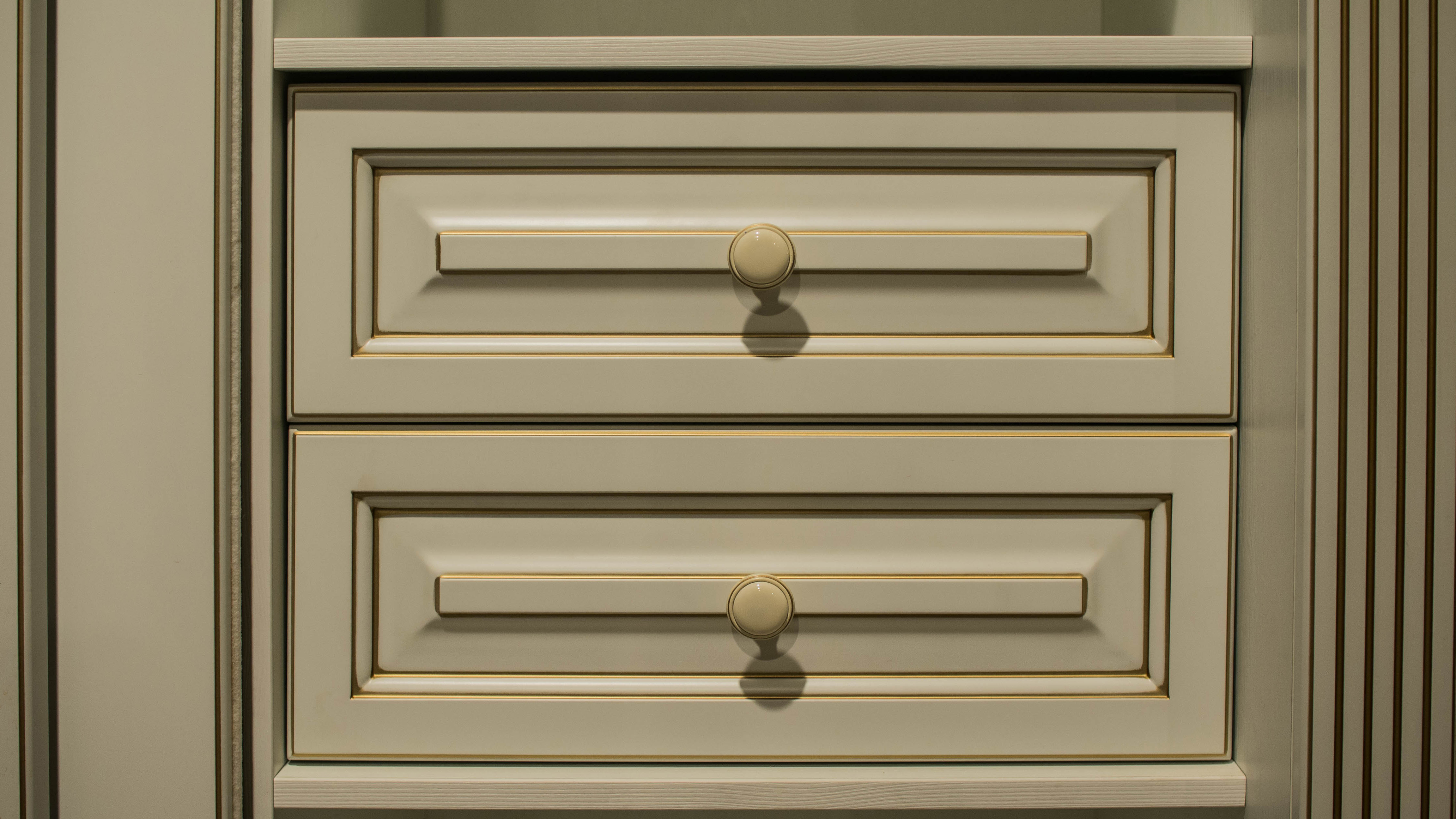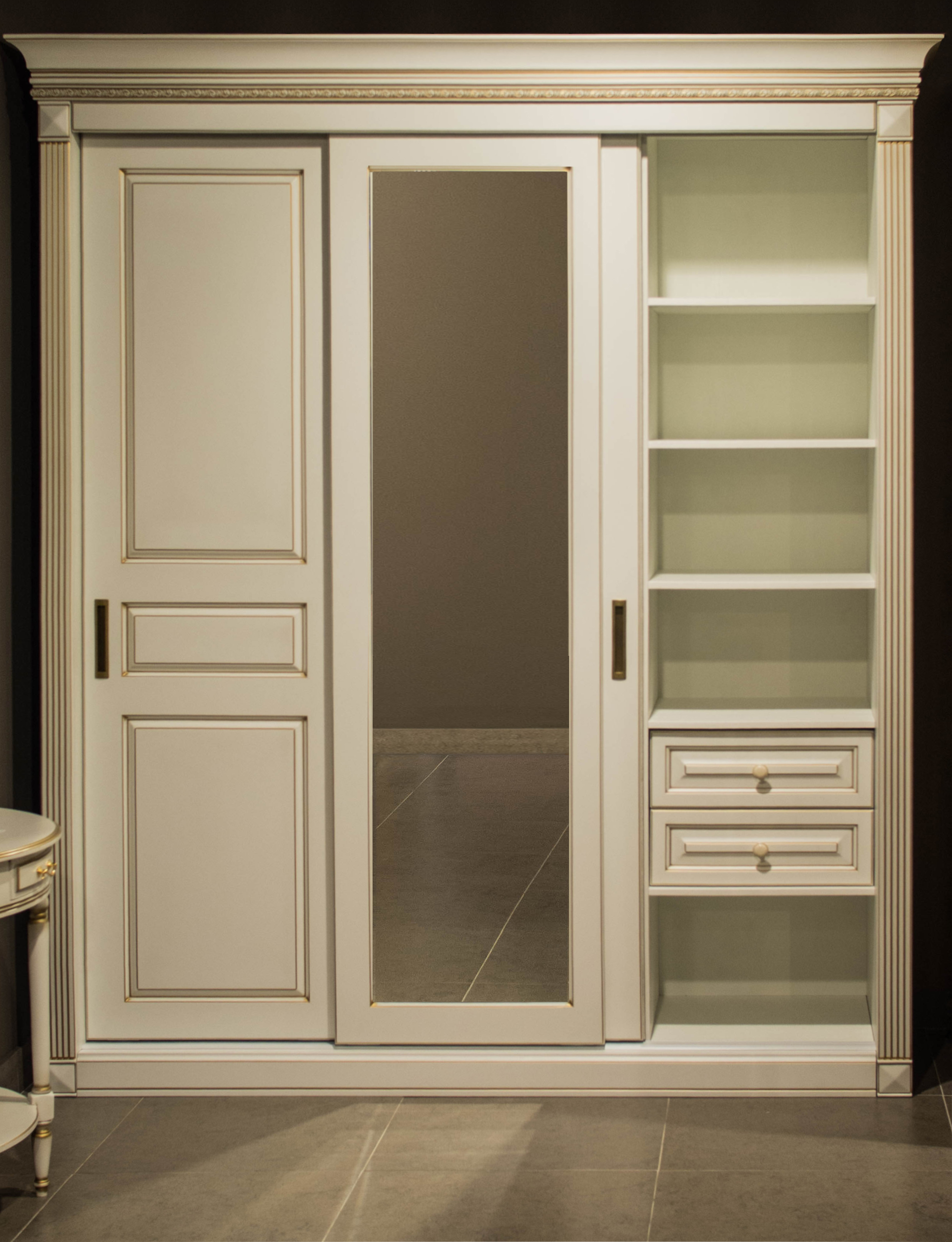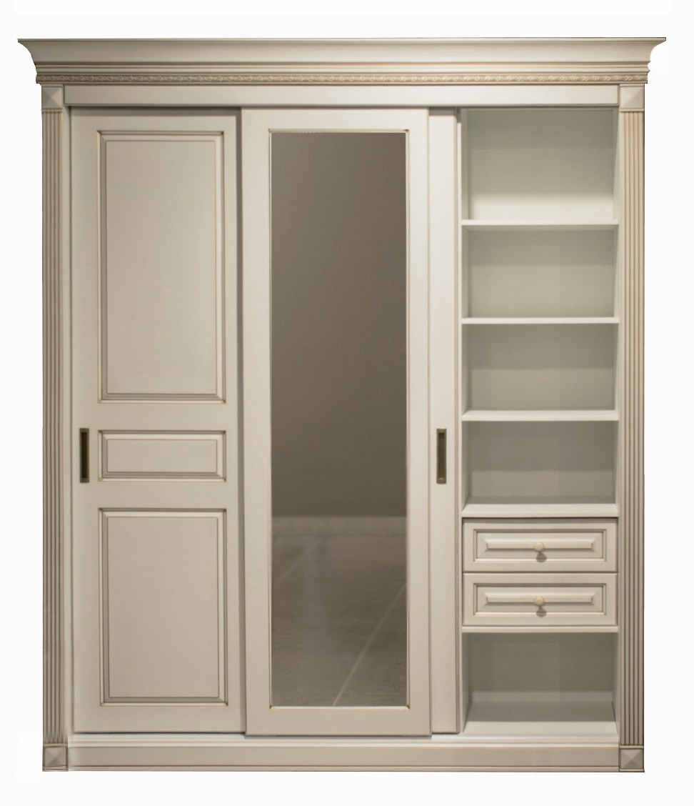Внутреннее наполнение - полки, ящики с классическими фасадами, горизонтальная штанга.