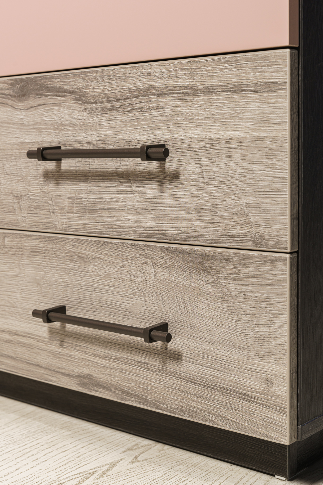 Фасад изделия выполнен из двустороннего МДФ коллекции Supramat с самовосстанавливающейся поверхностью.