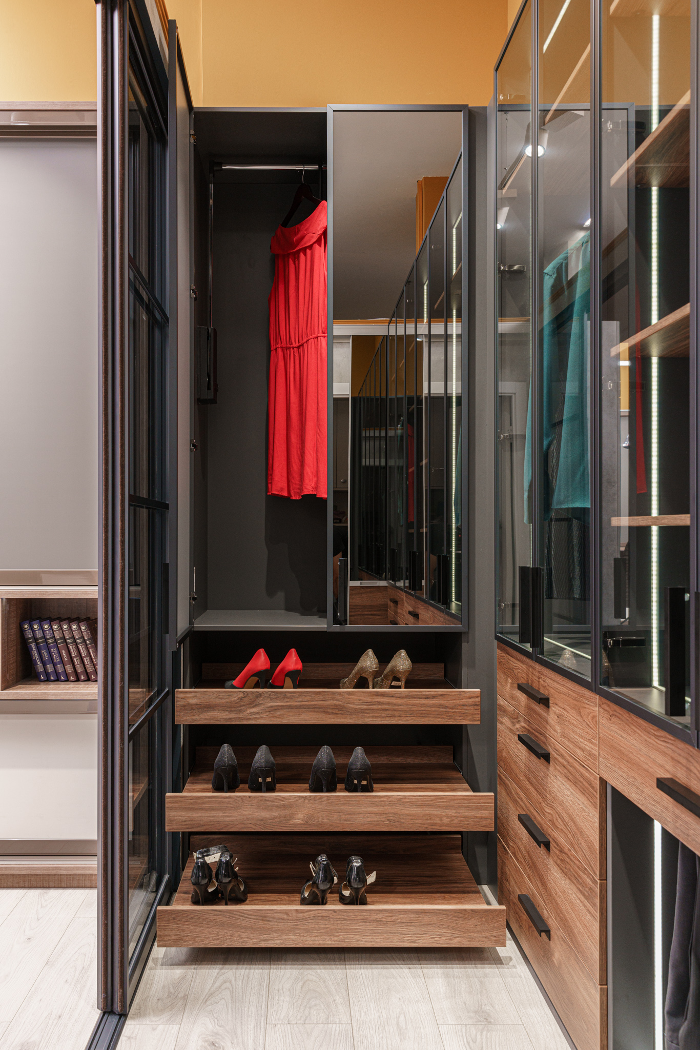 Фасад — Двери-купе: МДФ с зеркалом, гардеробная - МДФ