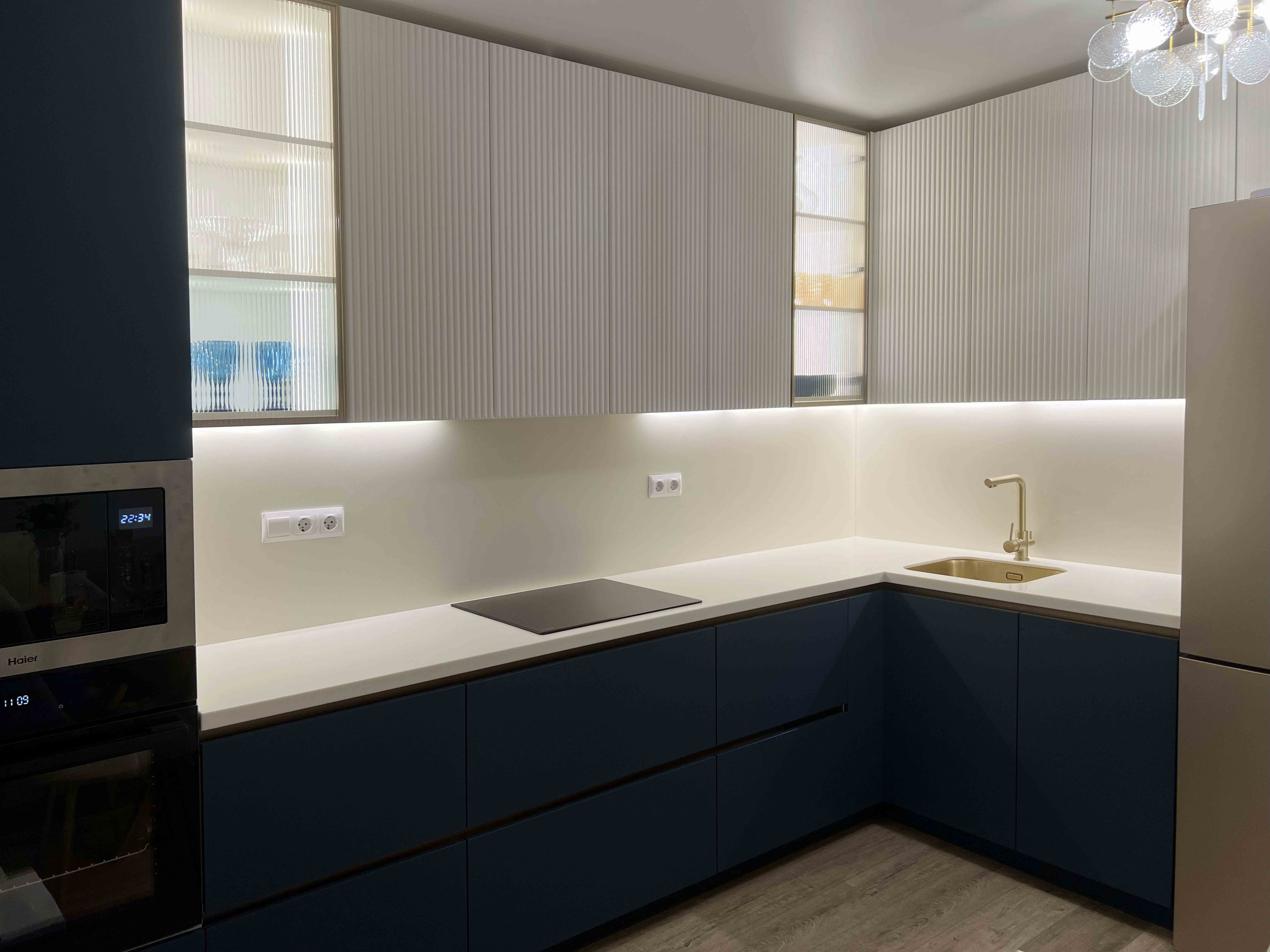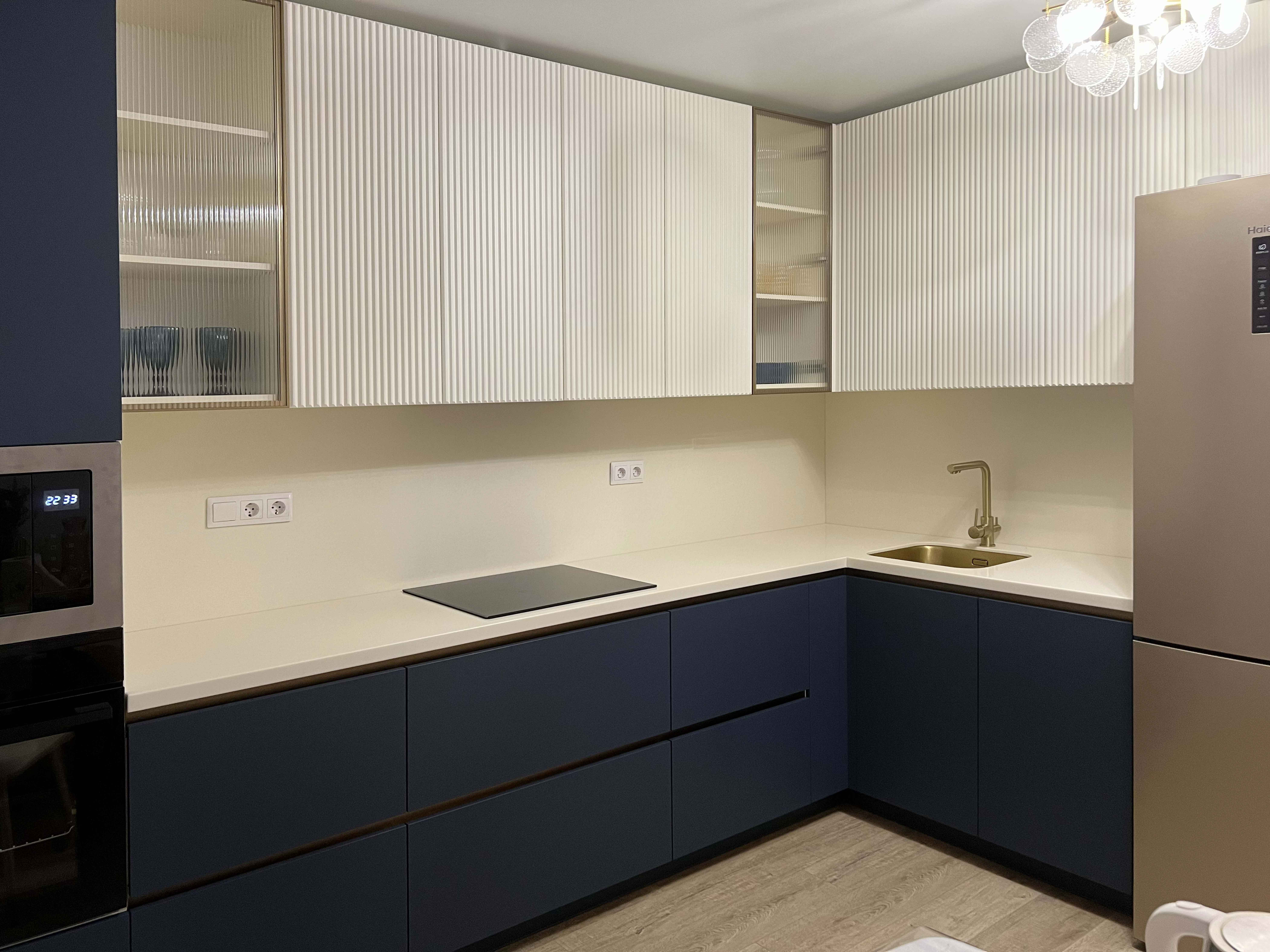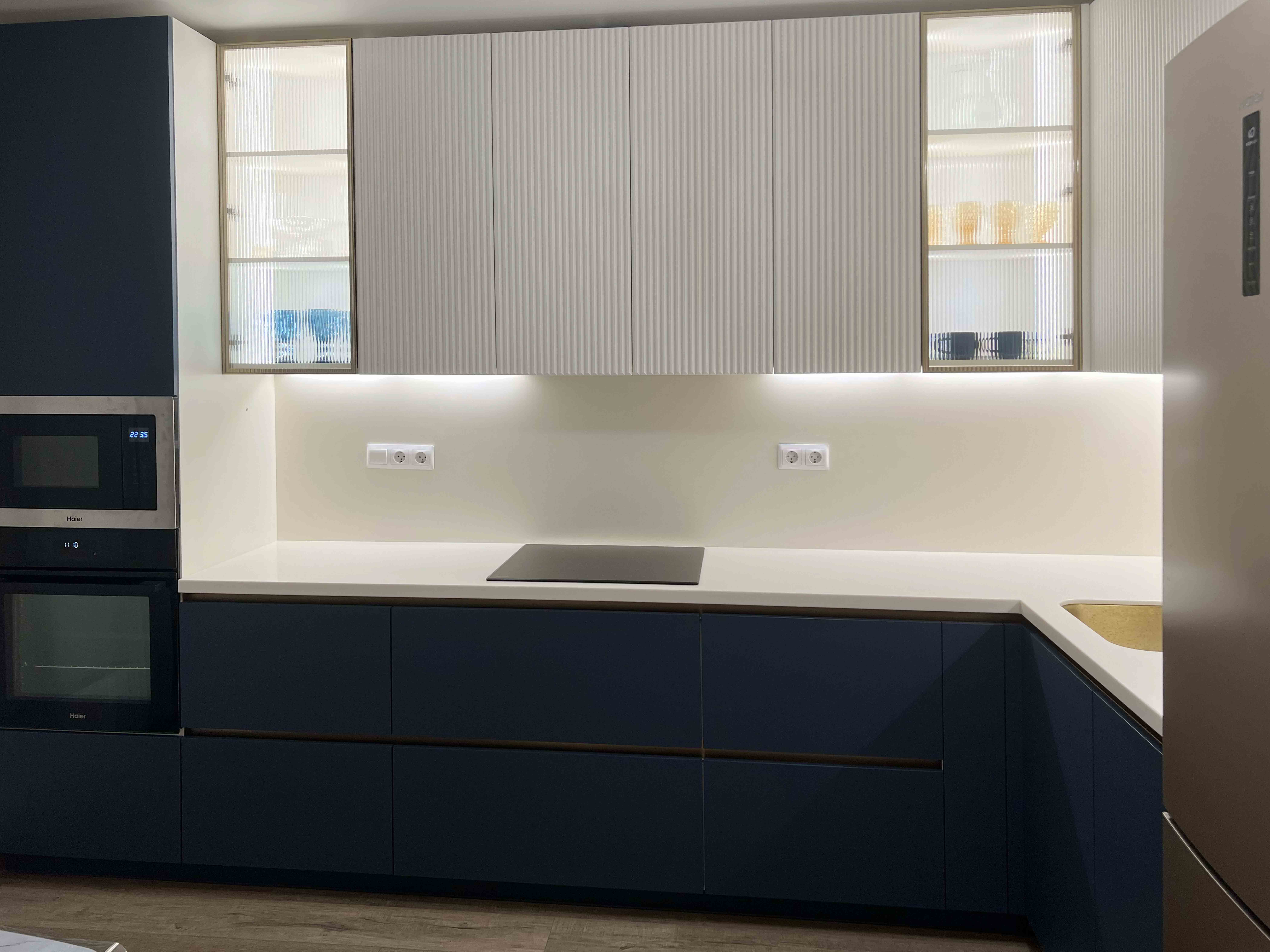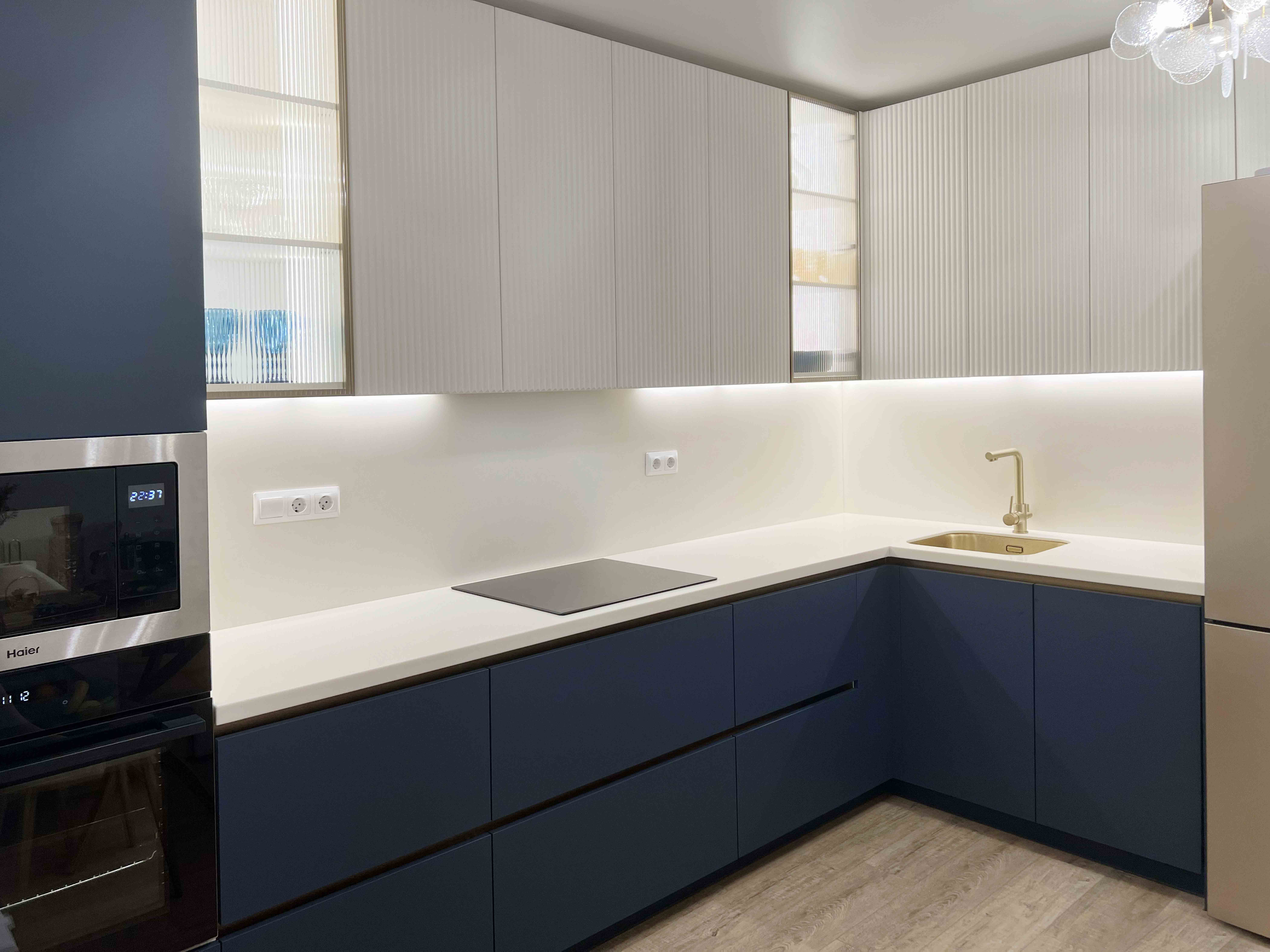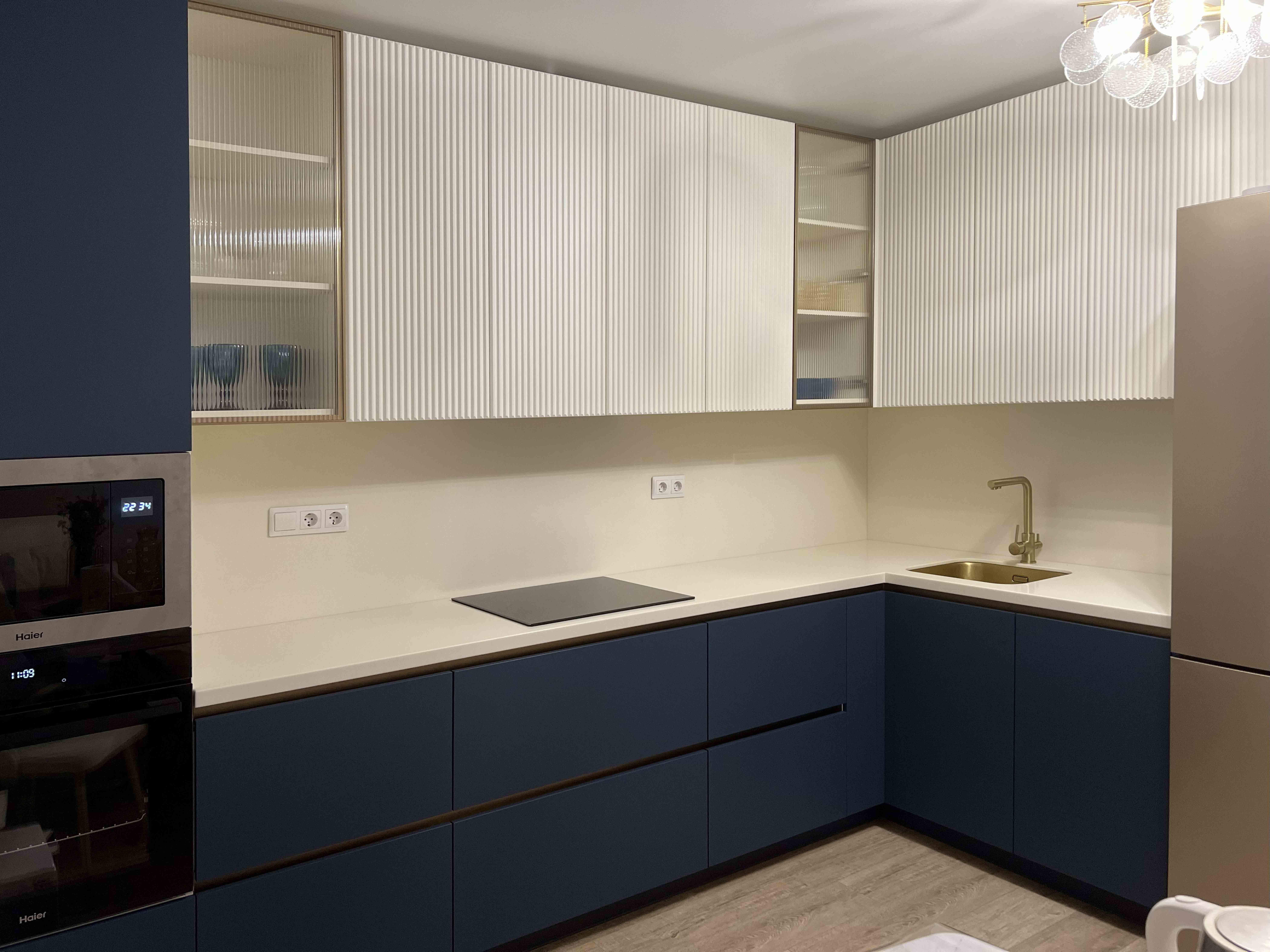 Индивидуальная угловая кухня на заказ от производителя — идеальное решение для вашего дома. Мы создаем кухни по вашим точным размерам, чтобы максимально эффективно использовать пространство и подчеркнуть стиль интерьера. В комплект входит прочная столешница и фартук из искусственного материала, обеспечивающих долговечность и легкость в уходе. Фасады выполнены из МДФ с эмалью Вельвет, оснащены интегрированными ручками для современного и минималистичного дизайна. Витрина с профилем Золото и прозрачным стеклом Moru ультра, с системой открывания Tip-On, добавит элегантности и функциональности. Дополнительная подсветка фартука и витрин создаст уютную атмосферу и подчеркнет красоту вашей кухни. Закажите уникальную кухню по индивидуальным размерам и наслаждайтесь качеством и стилем от ведущего производителя.