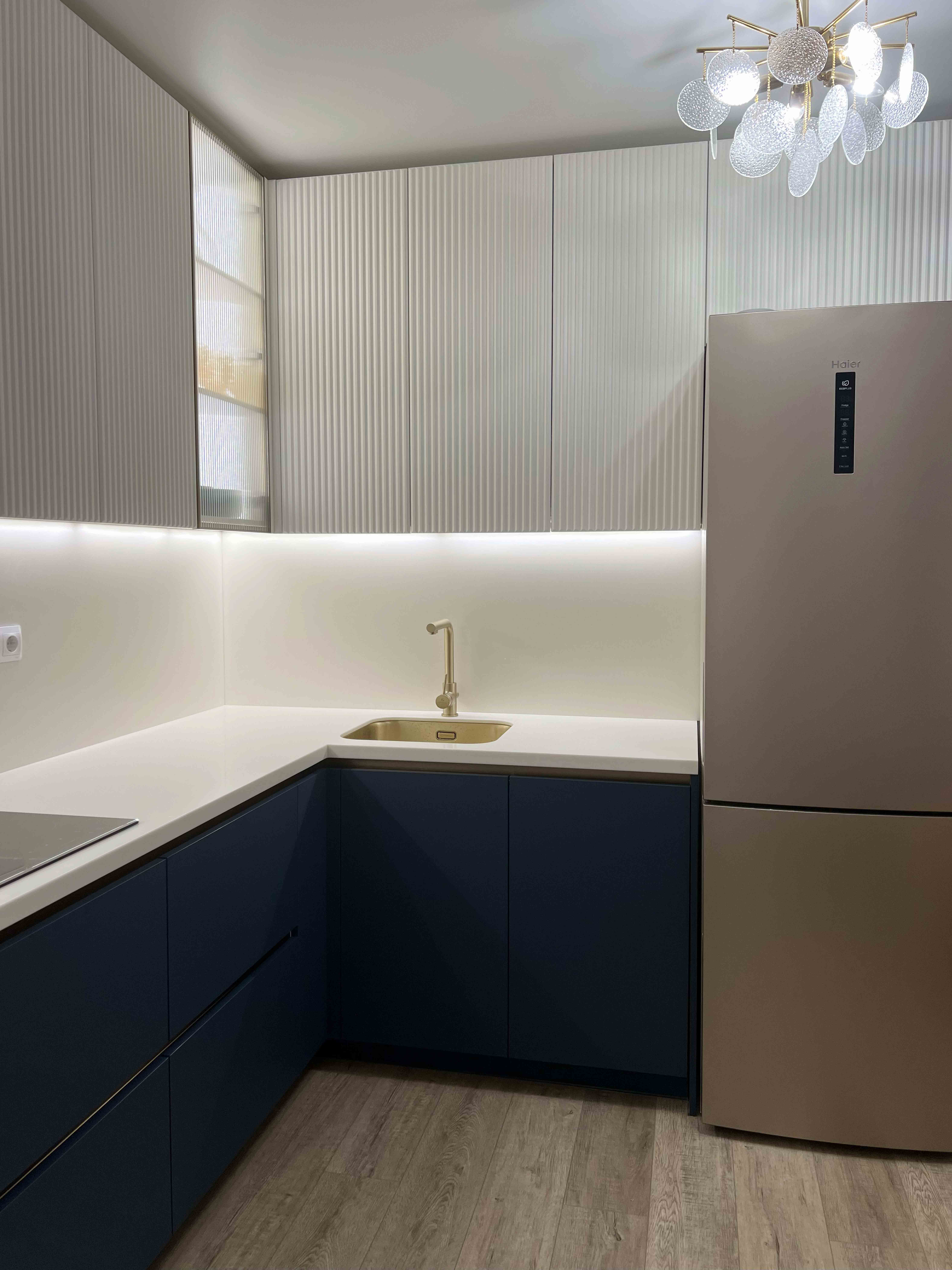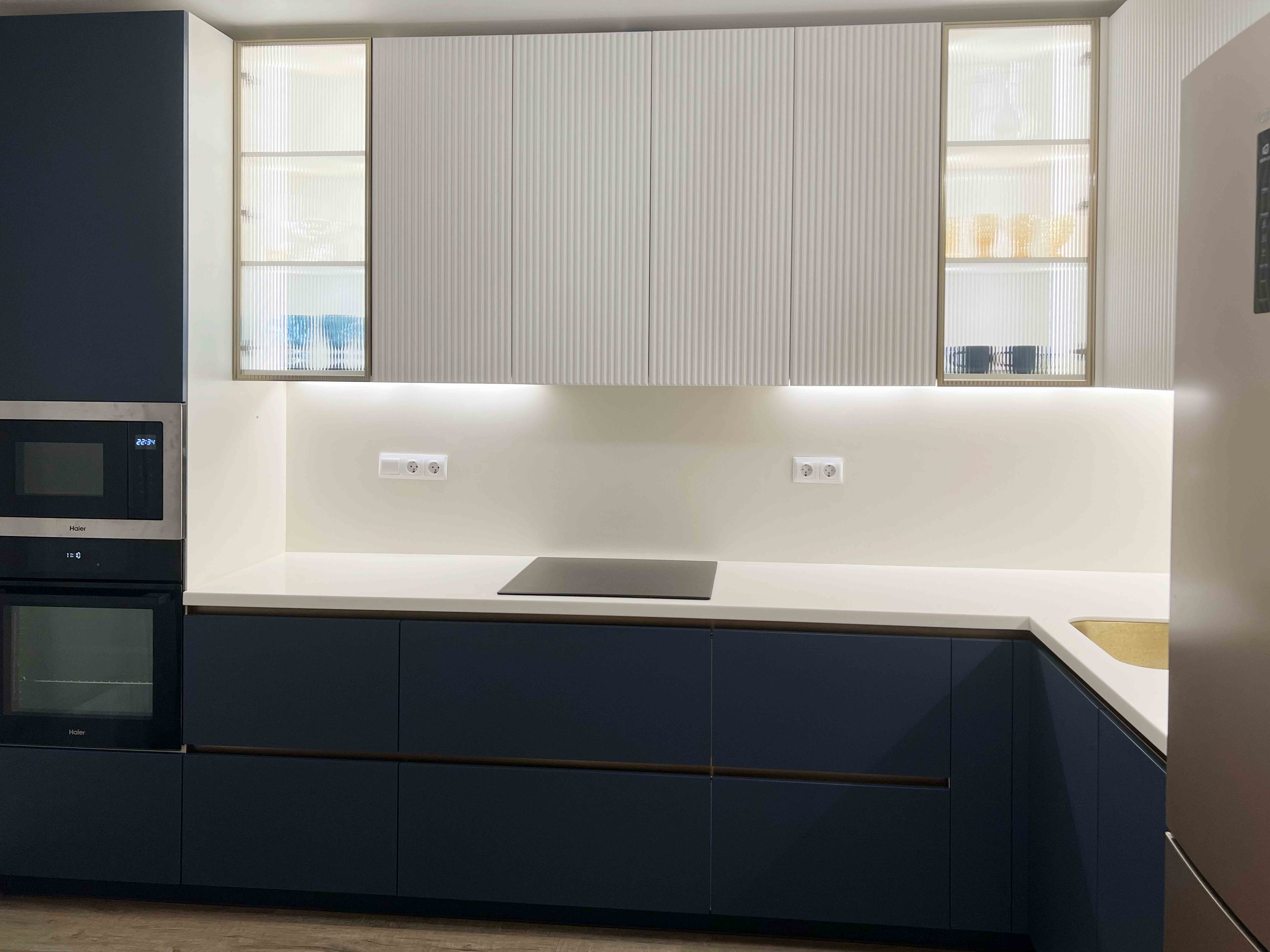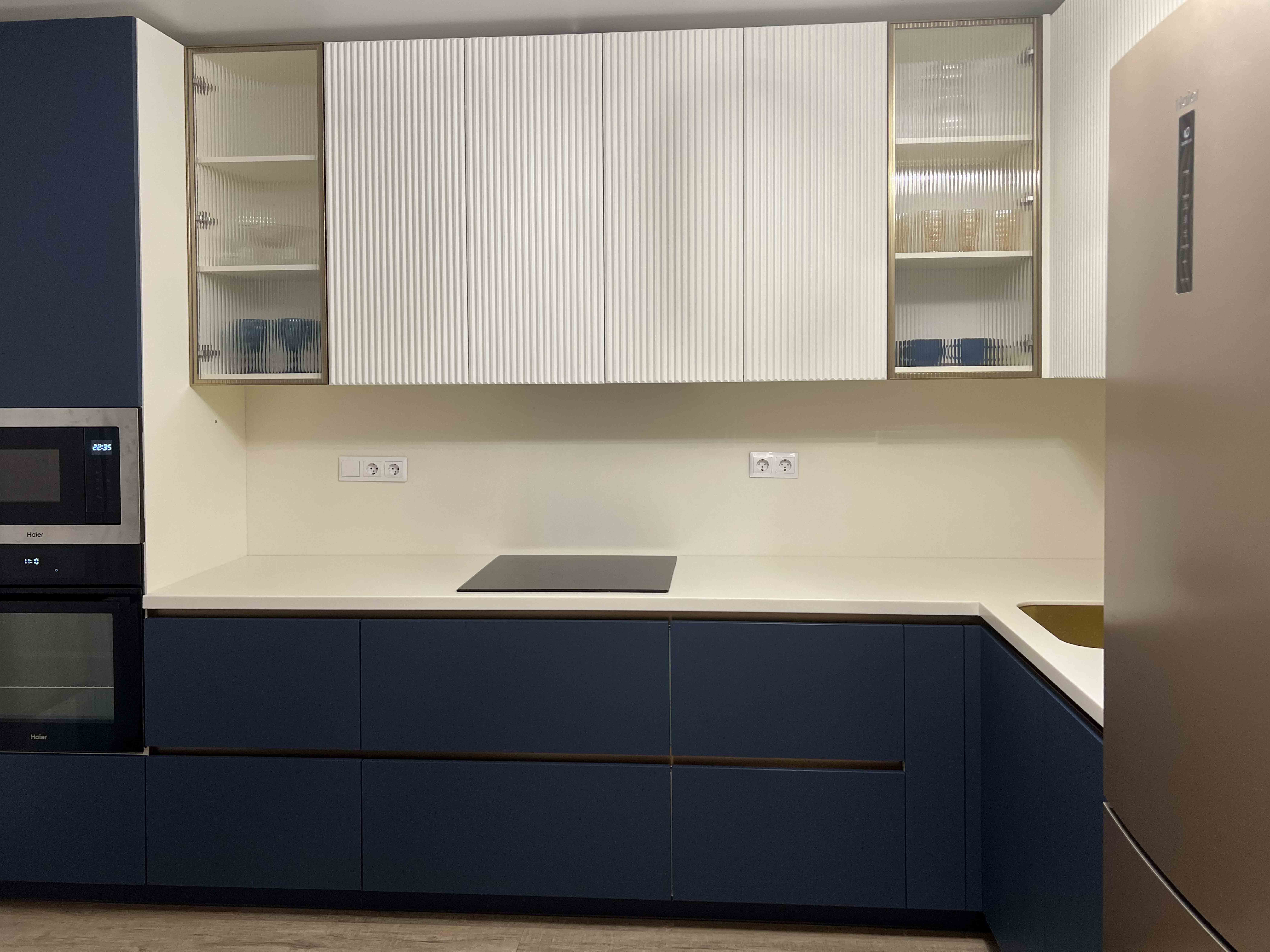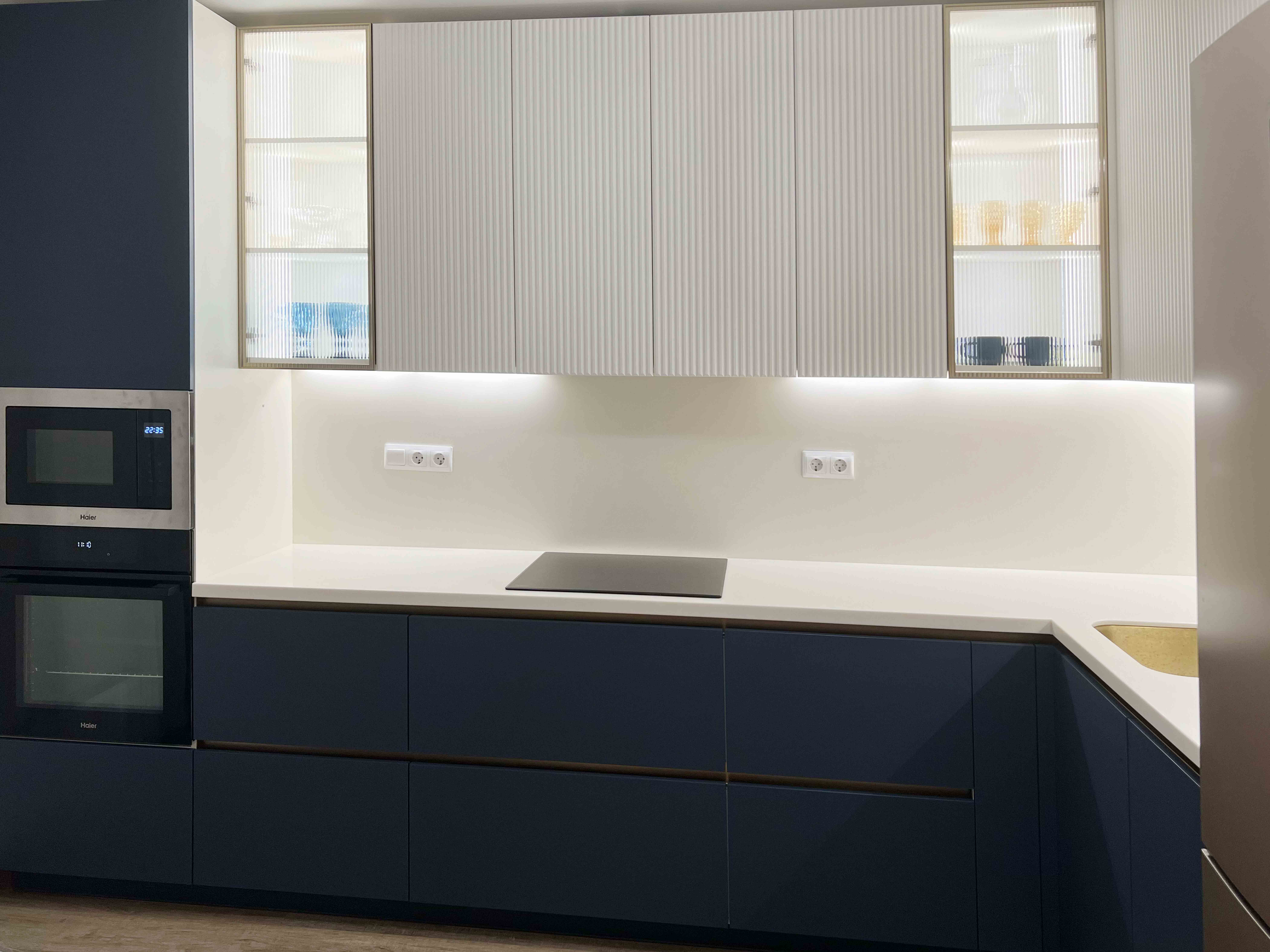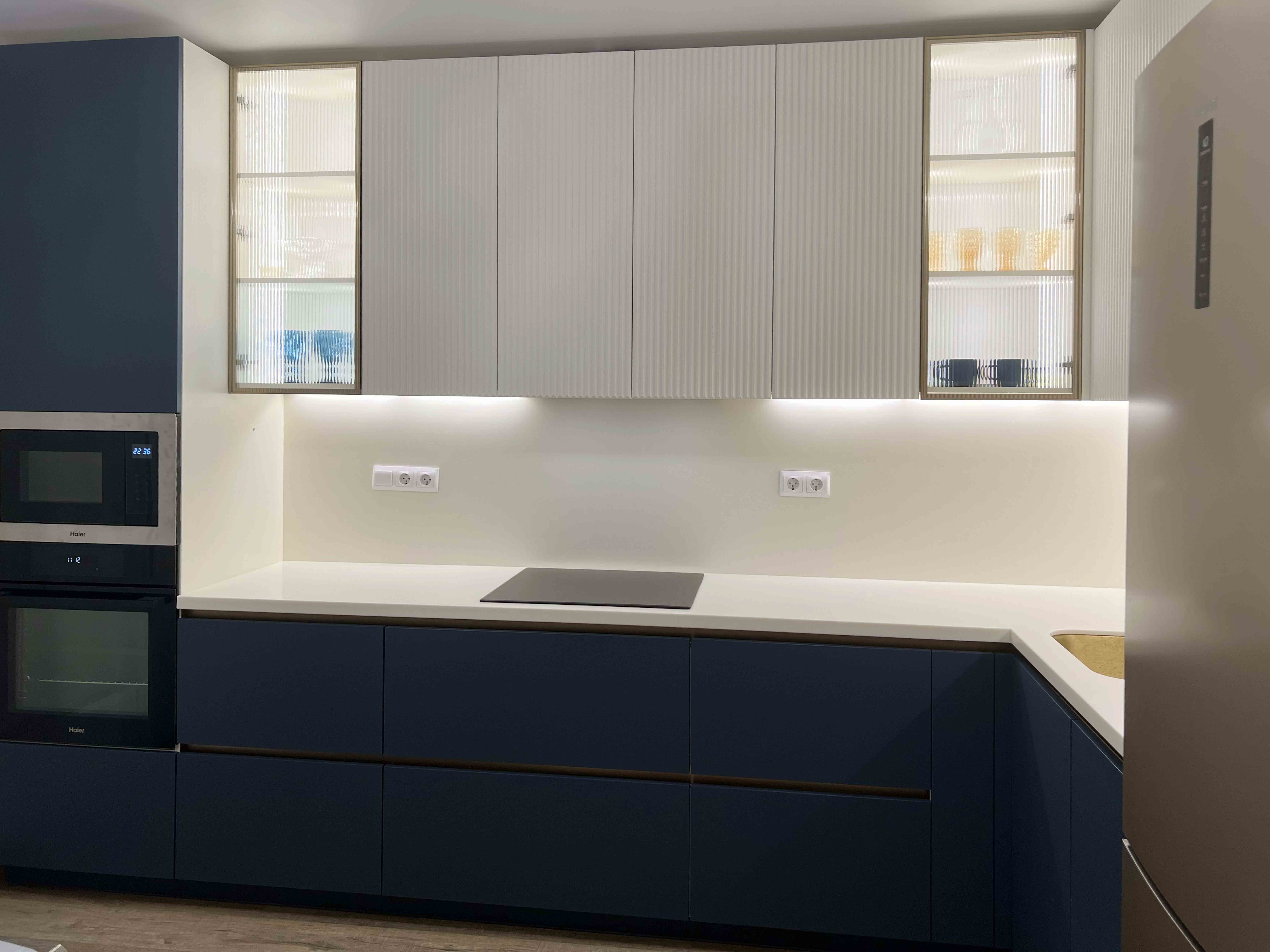 Индивидуальная угловая кухня на заказ от производителя — идеальное решение для вашего дома. Мы создаем кухни по вашим точным размерам, чтобы максимально эффективно использовать пространство и подчеркнуть стиль интерьера. В комплект входит прочная столешница и фартук из искусственного материала, обеспечивающих долговечность и легкость в уходе. Фасады выполнены из МДФ с эмалью Вельвет, оснащены интегрированными ручками для современного и минималистичного дизайна. Витрина с профилем Золото и прозрачным стеклом Moru ультра, с системой открывания Tip-On, добавит элегантности и функциональности. Дополнительная подсветка фартука и витрин создаст уютную атмосферу и подчеркнет красоту вашей кухни. Закажите уникальную кухню по индивидуальным размерам и наслаждайтесь качеством и стилем от ведущего производителя.