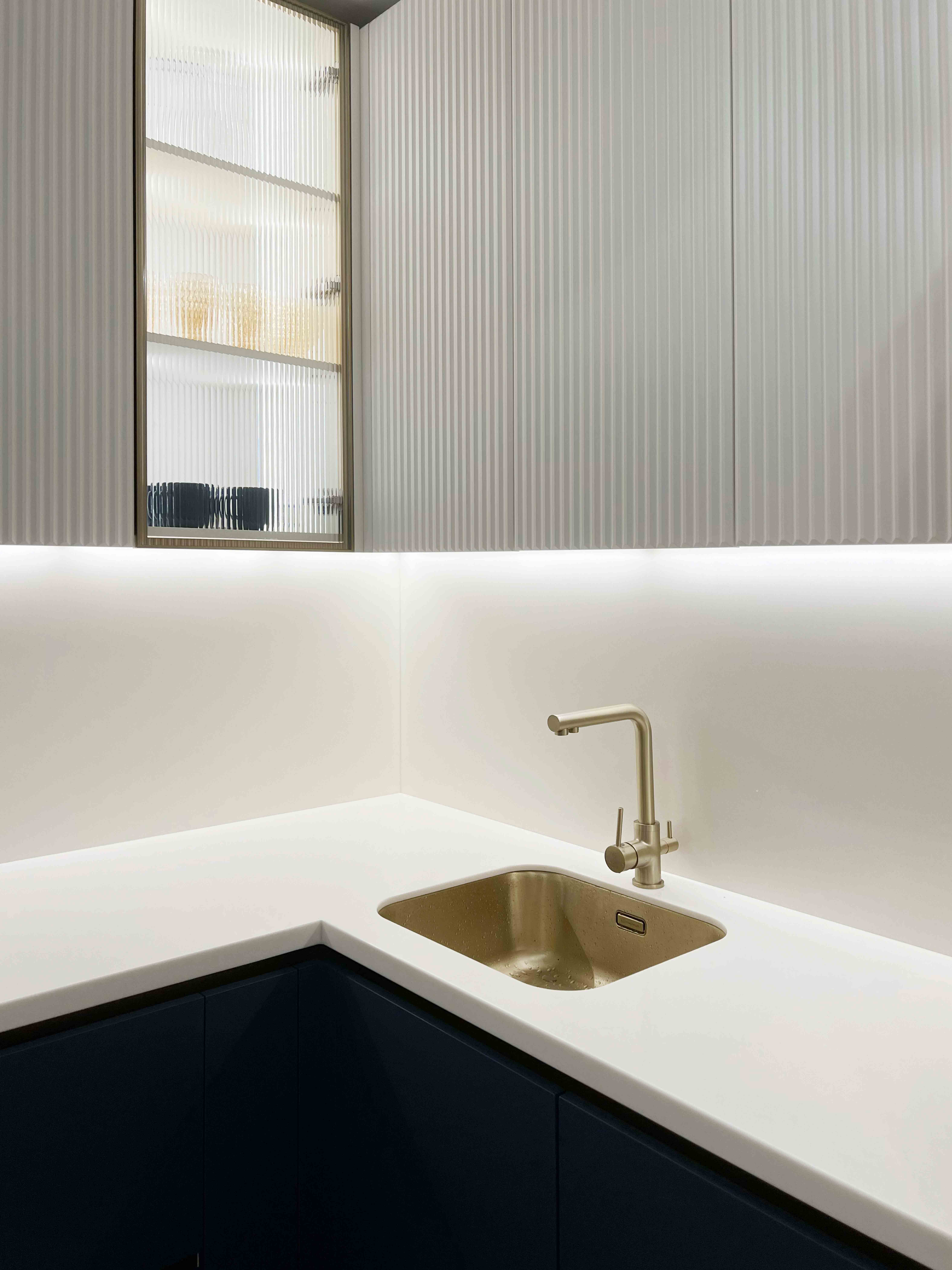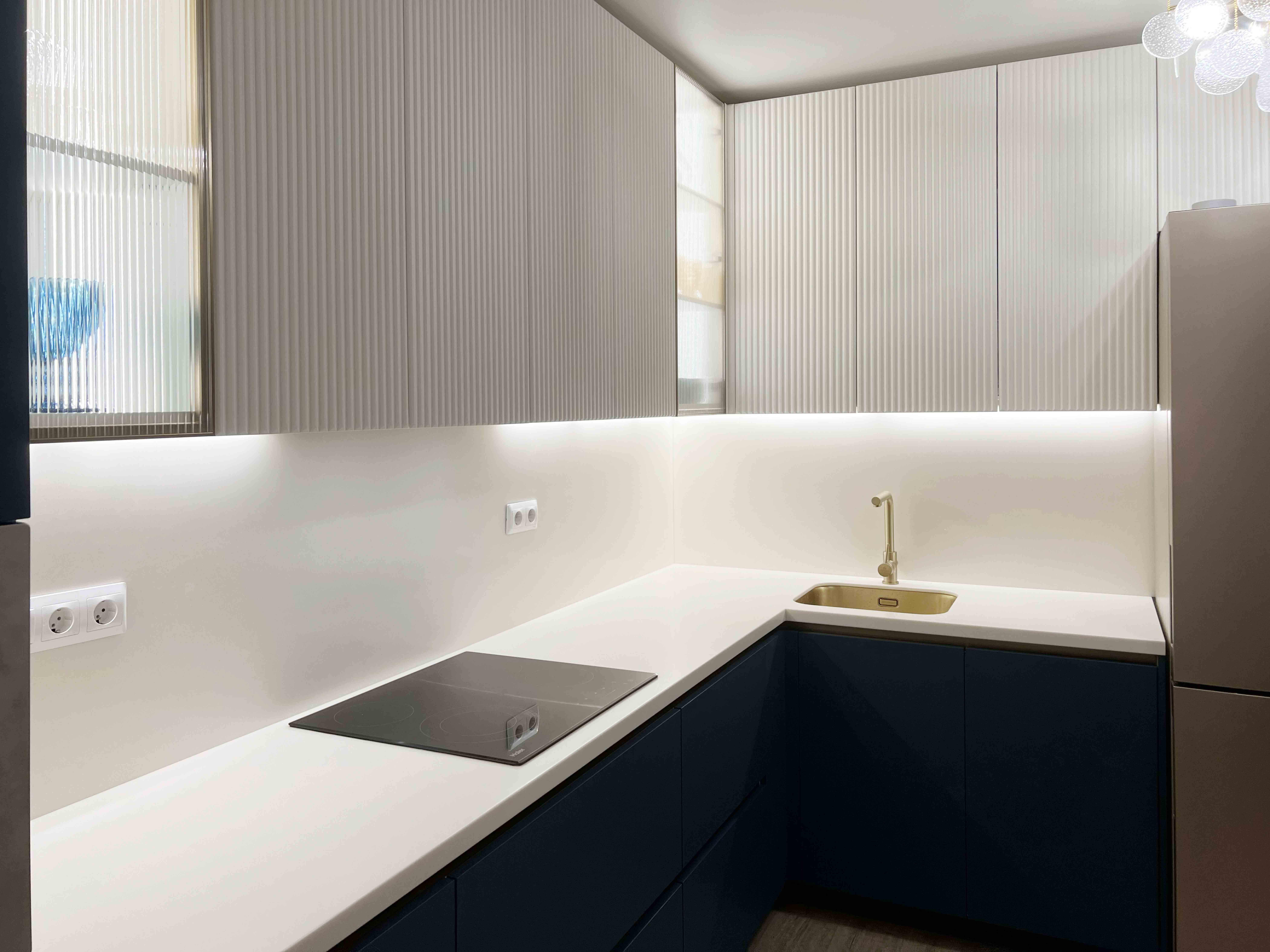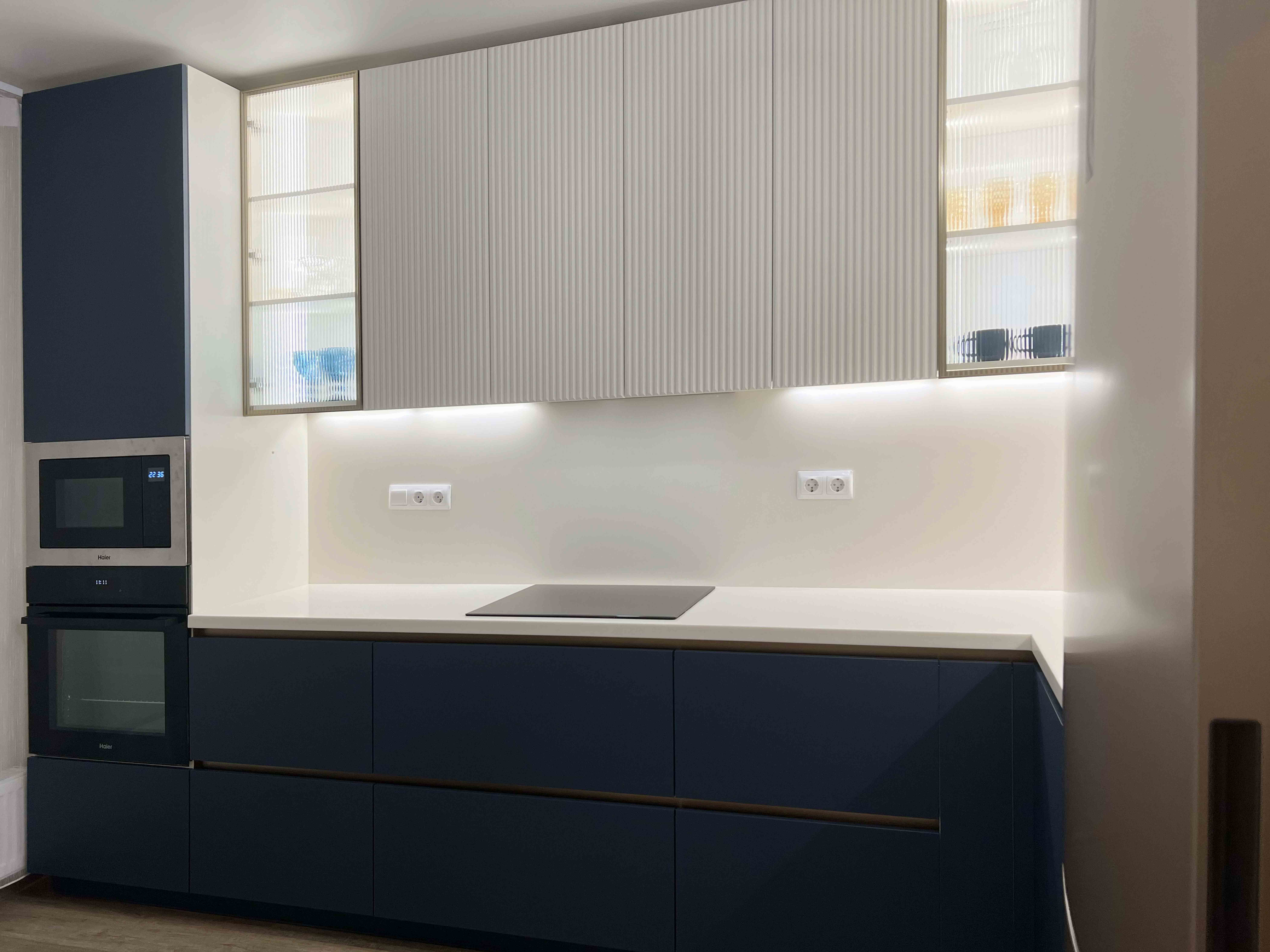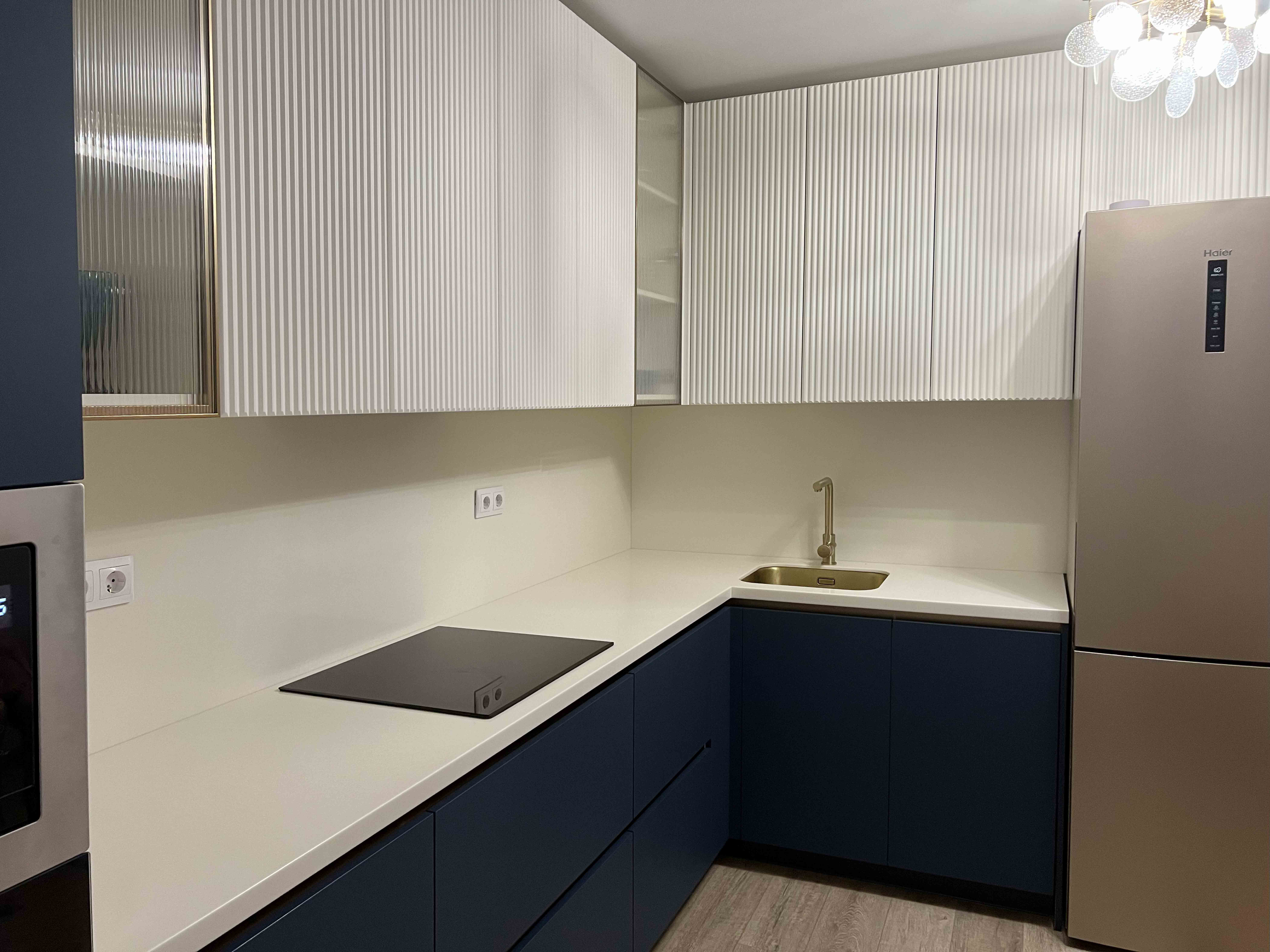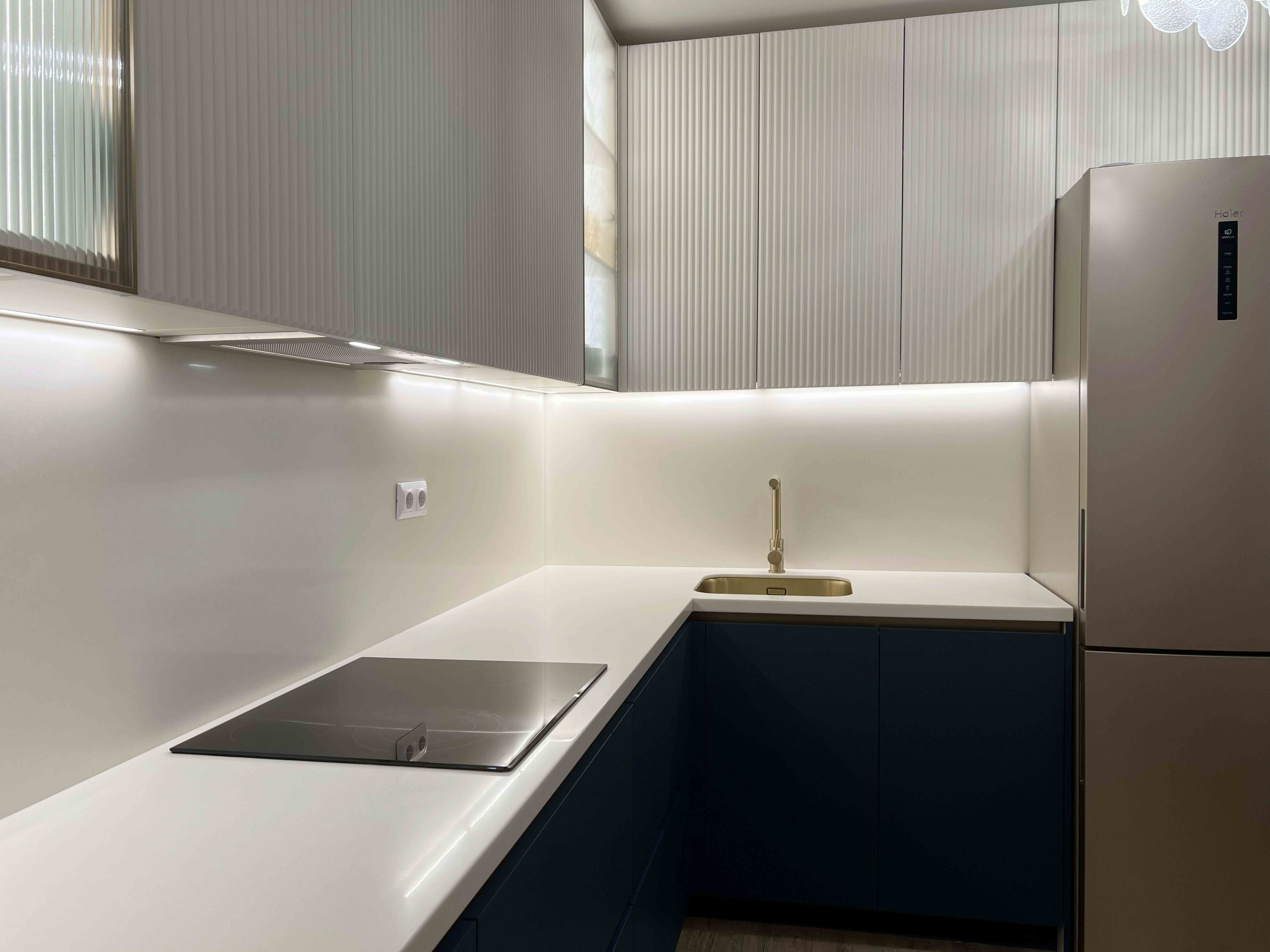 Индивидуальная угловая кухня на заказ от производителя — идеальное решение для вашего дома. Мы создаем кухни по вашим точным размерам, чтобы максимально эффективно использовать пространство и подчеркнуть стиль интерьера. В комплект входит прочная столешница и фартук из искусственного материала, обеспечивающих долговечность и легкость в уходе. Фасады выполнены из МДФ с эмалью Вельвет, оснащены интегрированными ручками для современного и минималистичного дизайна. Витрина с профилем Золото и прозрачным стеклом Moru ультра, с системой открывания Tip-On, добавит элегантности и функциональности. Дополнительная подсветка фартука и витрин создаст уютную атмосферу и подчеркнет красоту вашей кухни. Закажите уникальную кухню по индивидуальным размерам и наслаждайтесь качеством и стилем от ведущего производителя.