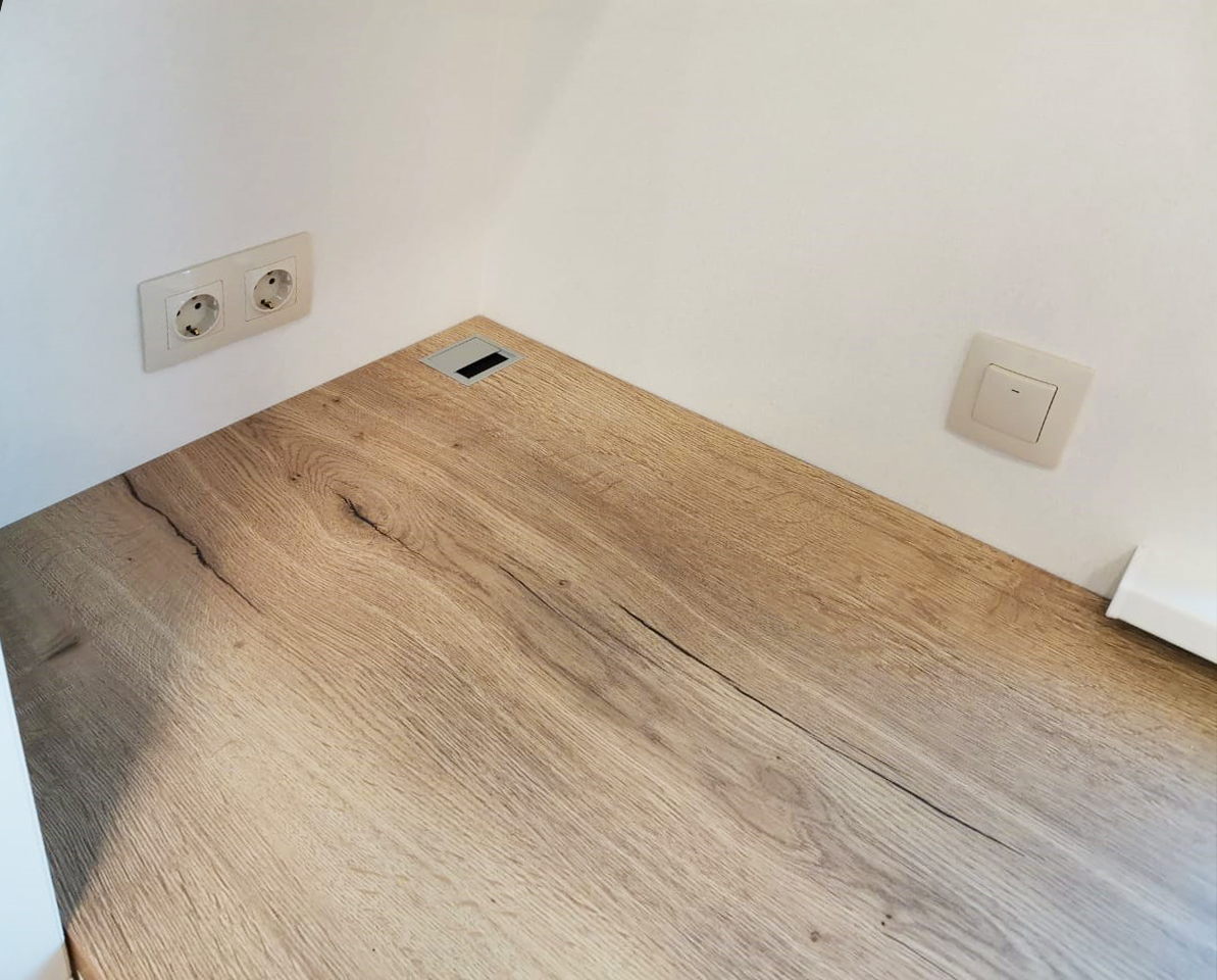 Декор ЛДСП Egger Белый премиум создаёт гармоничный контраст с натуральным древесным декором Дуб Галифакс натуральный, который, благодаря ярко выраженным сучьям и трещинам в своём рисунке, позволяет воплотить в интерьере мечту об естественности и аутентичности в жилых помещениях.